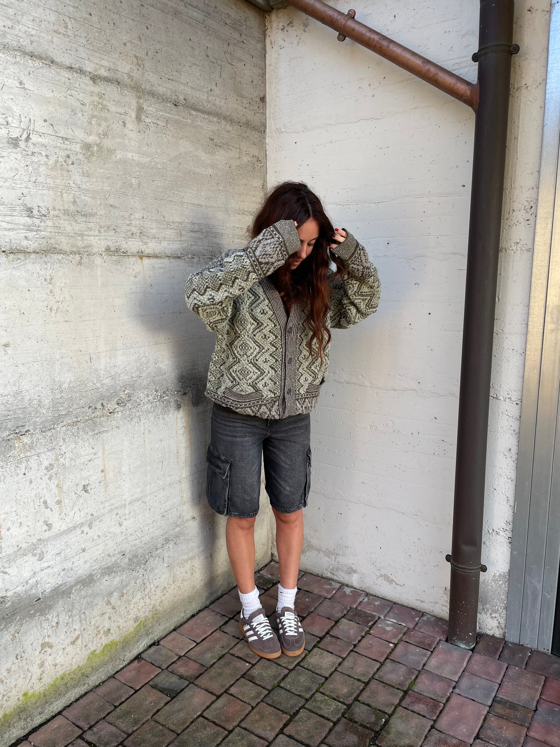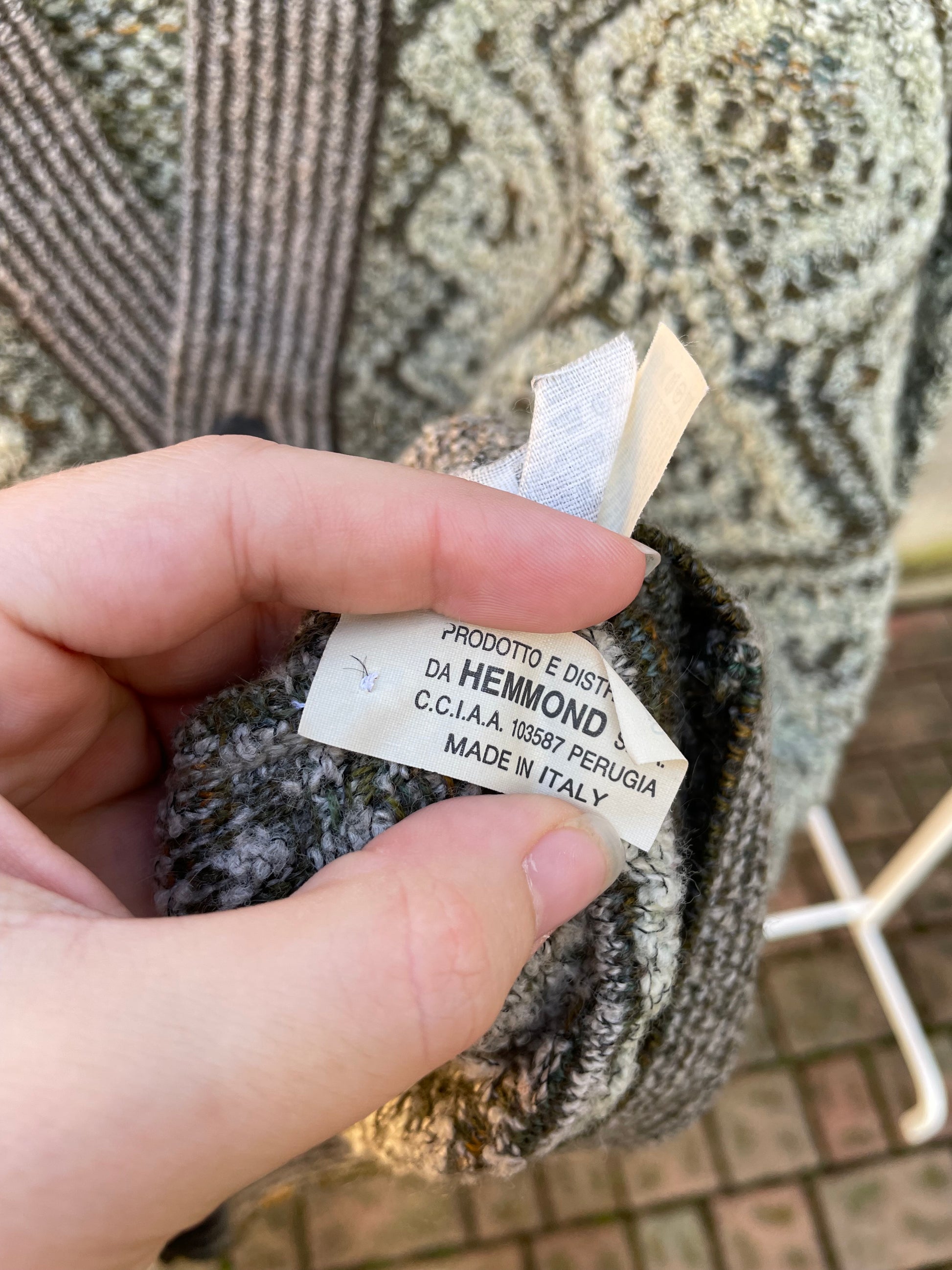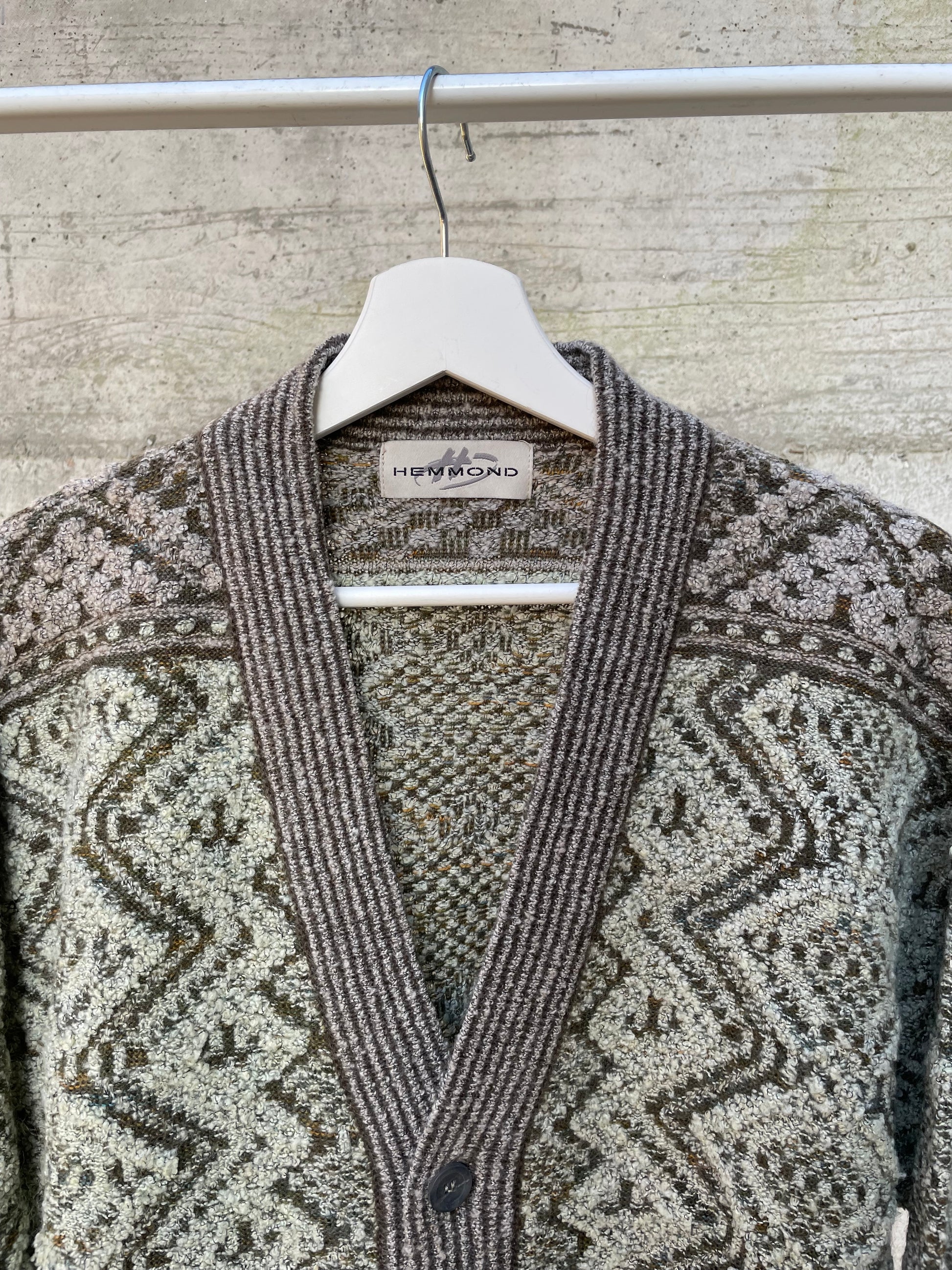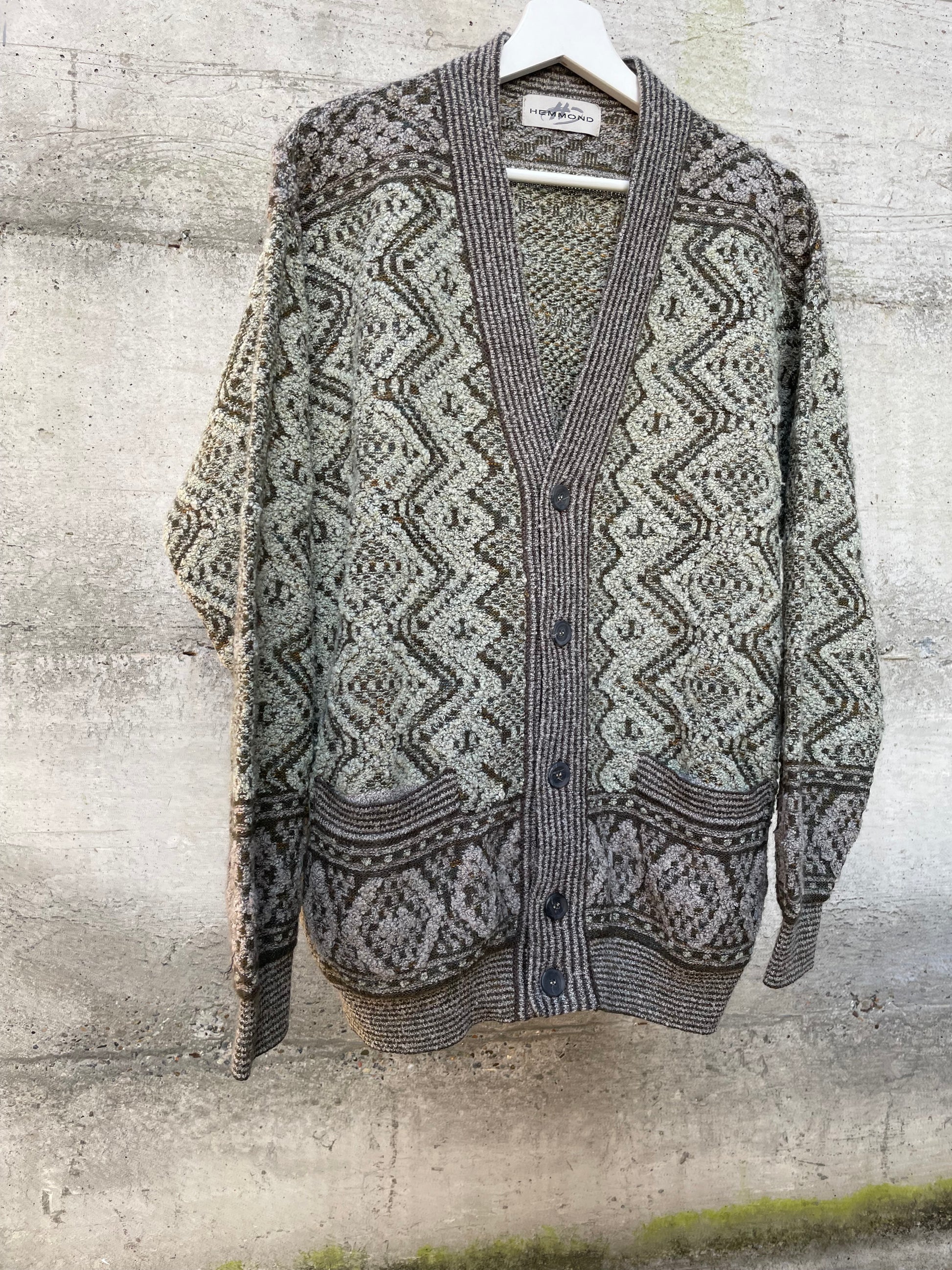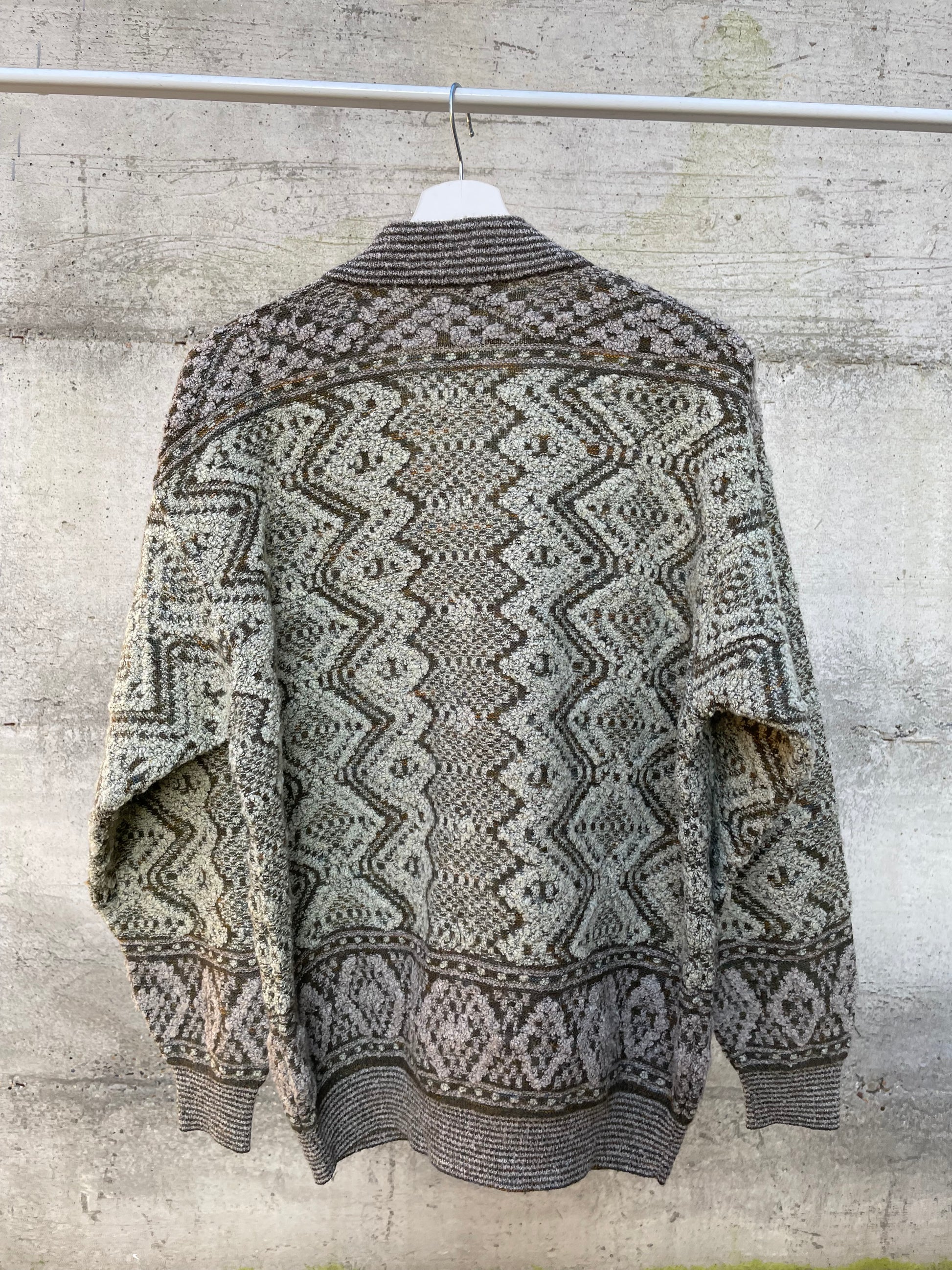 Maxi cardigan fantasia in misto lana vergine e mohair con una piccola percentuale di seta.