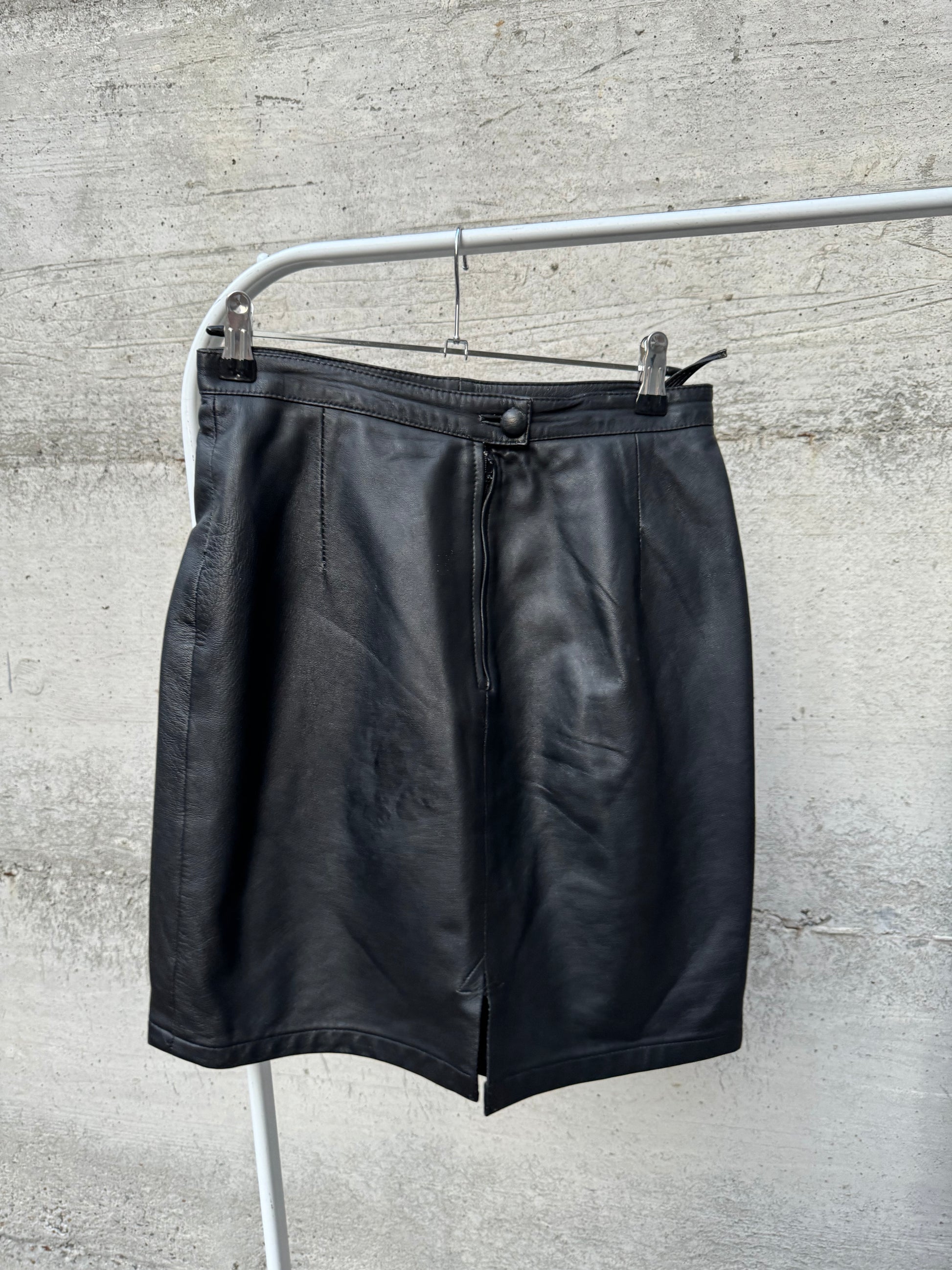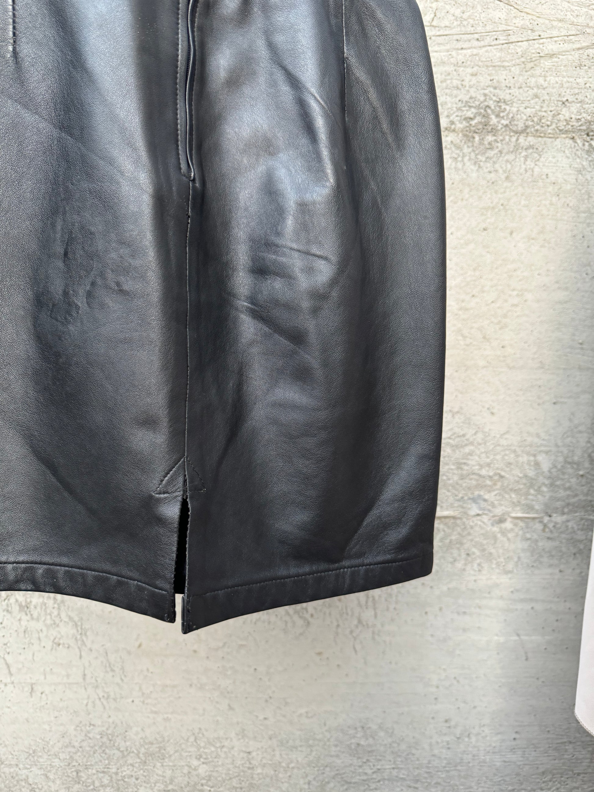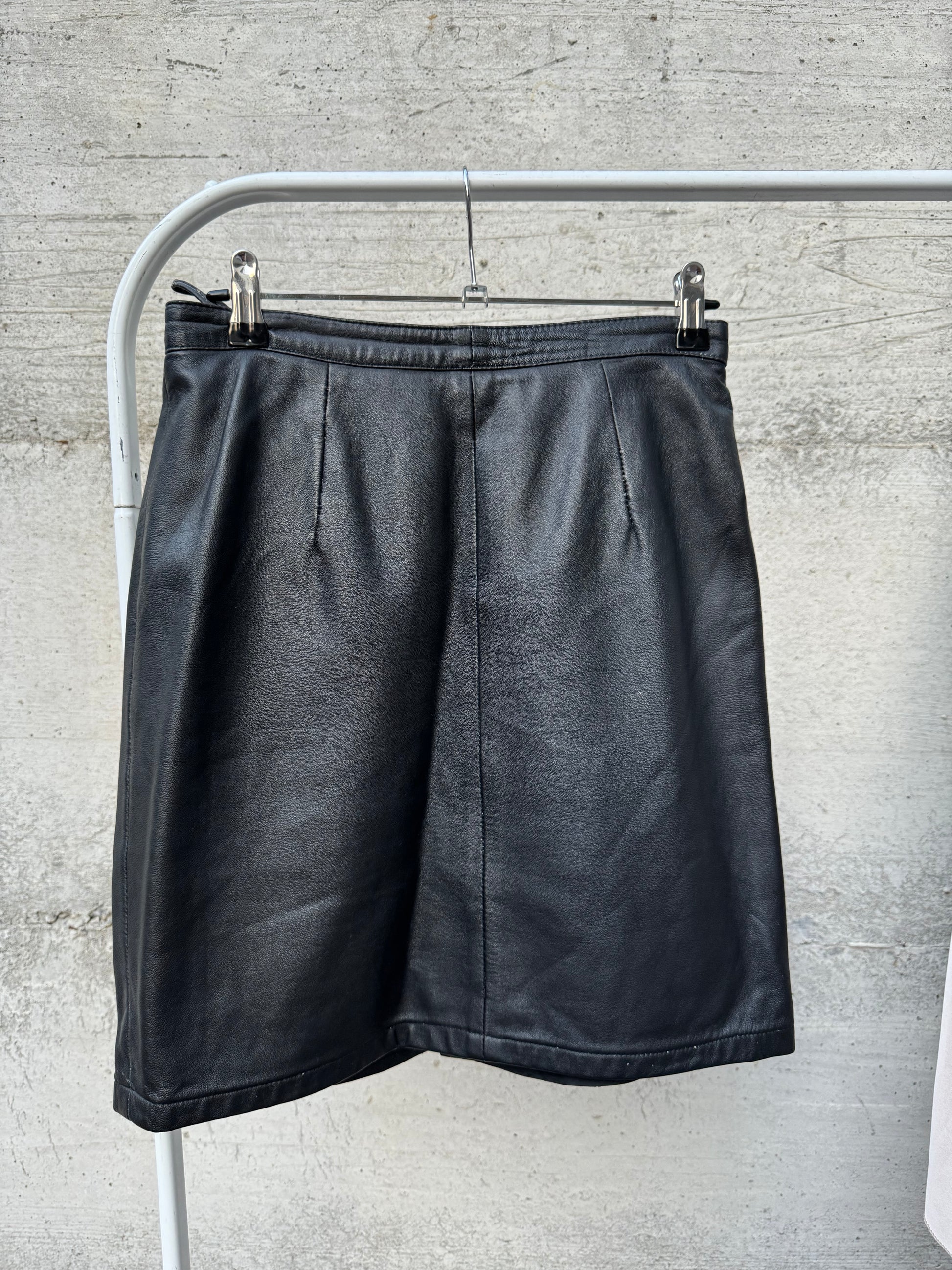 Minigonna a vita alta in vera pelle nera, taglia 40it