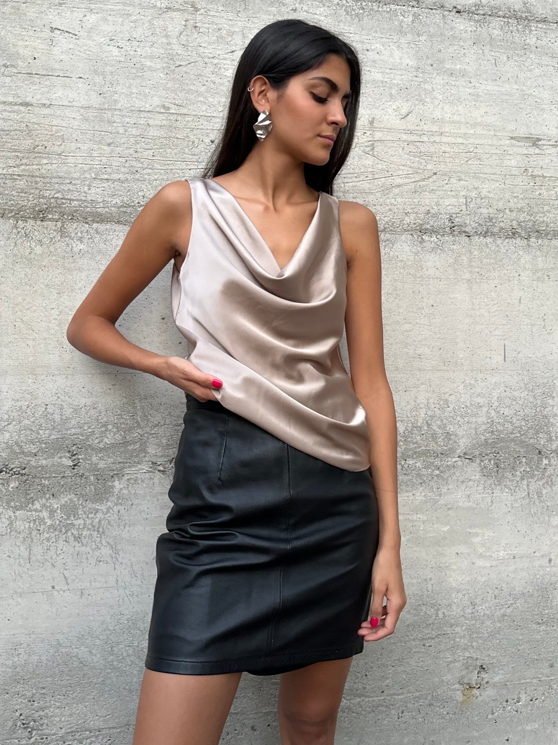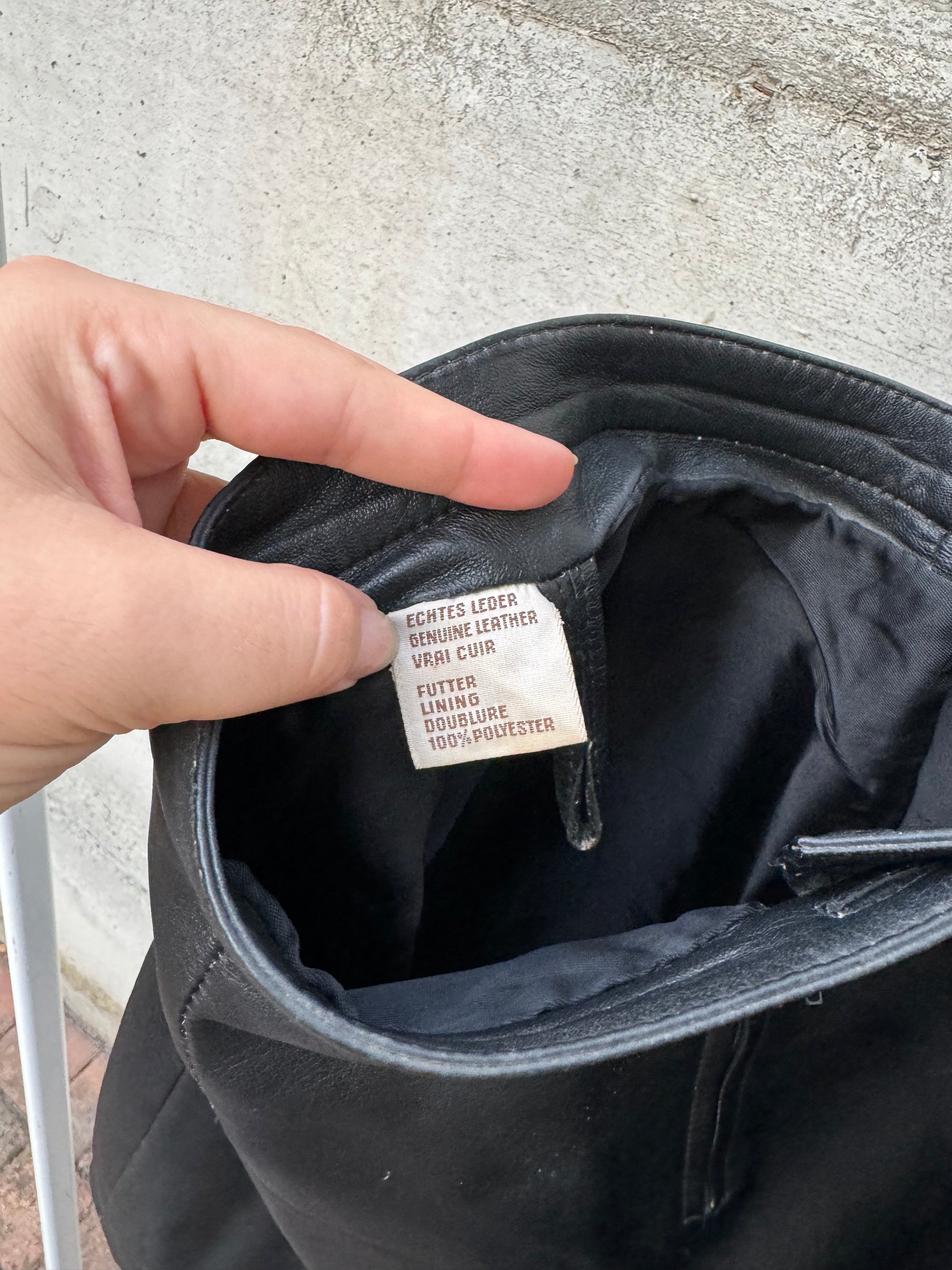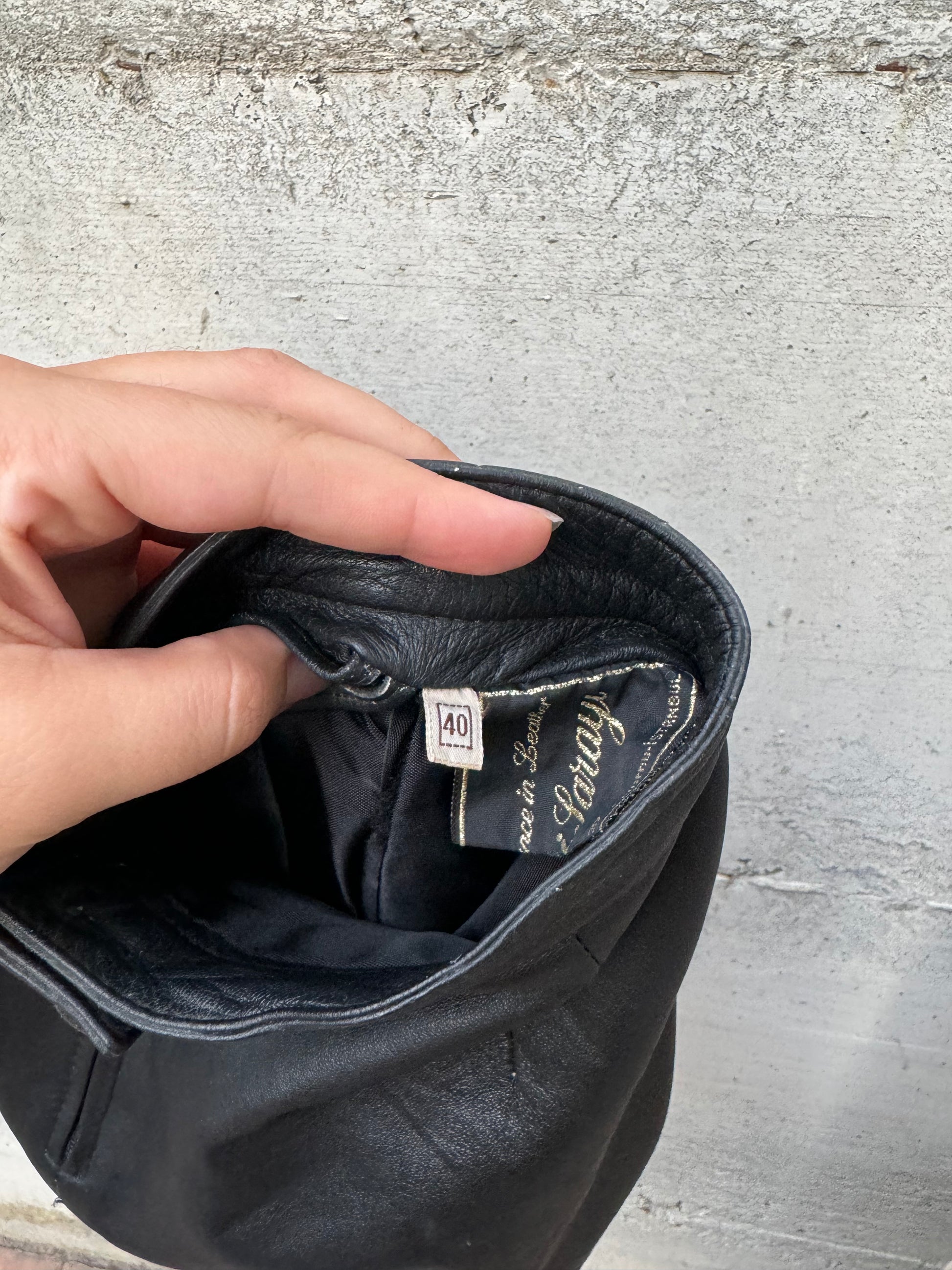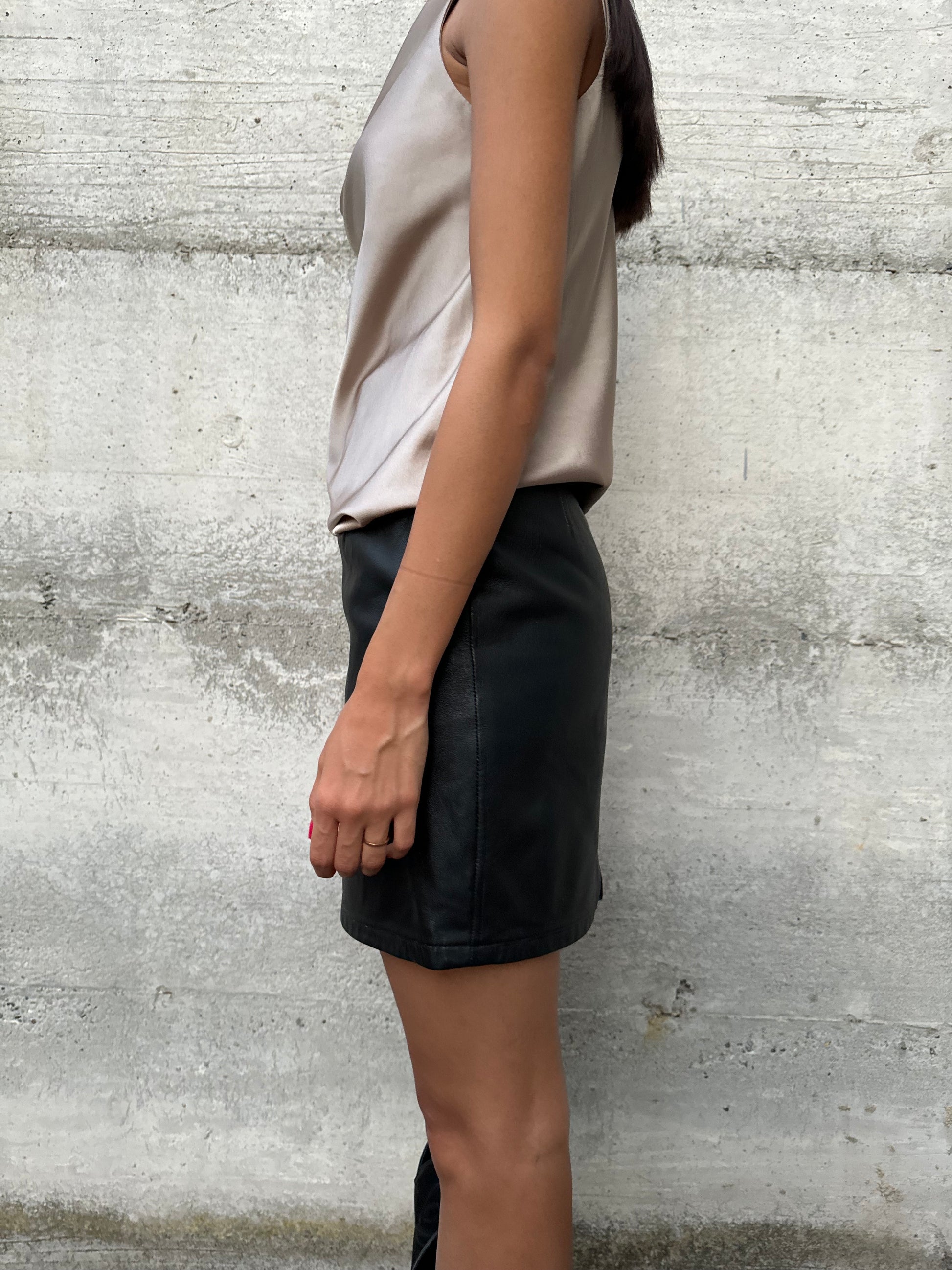 Minigonna a vita alta in vera pelle nera, taglia 40it