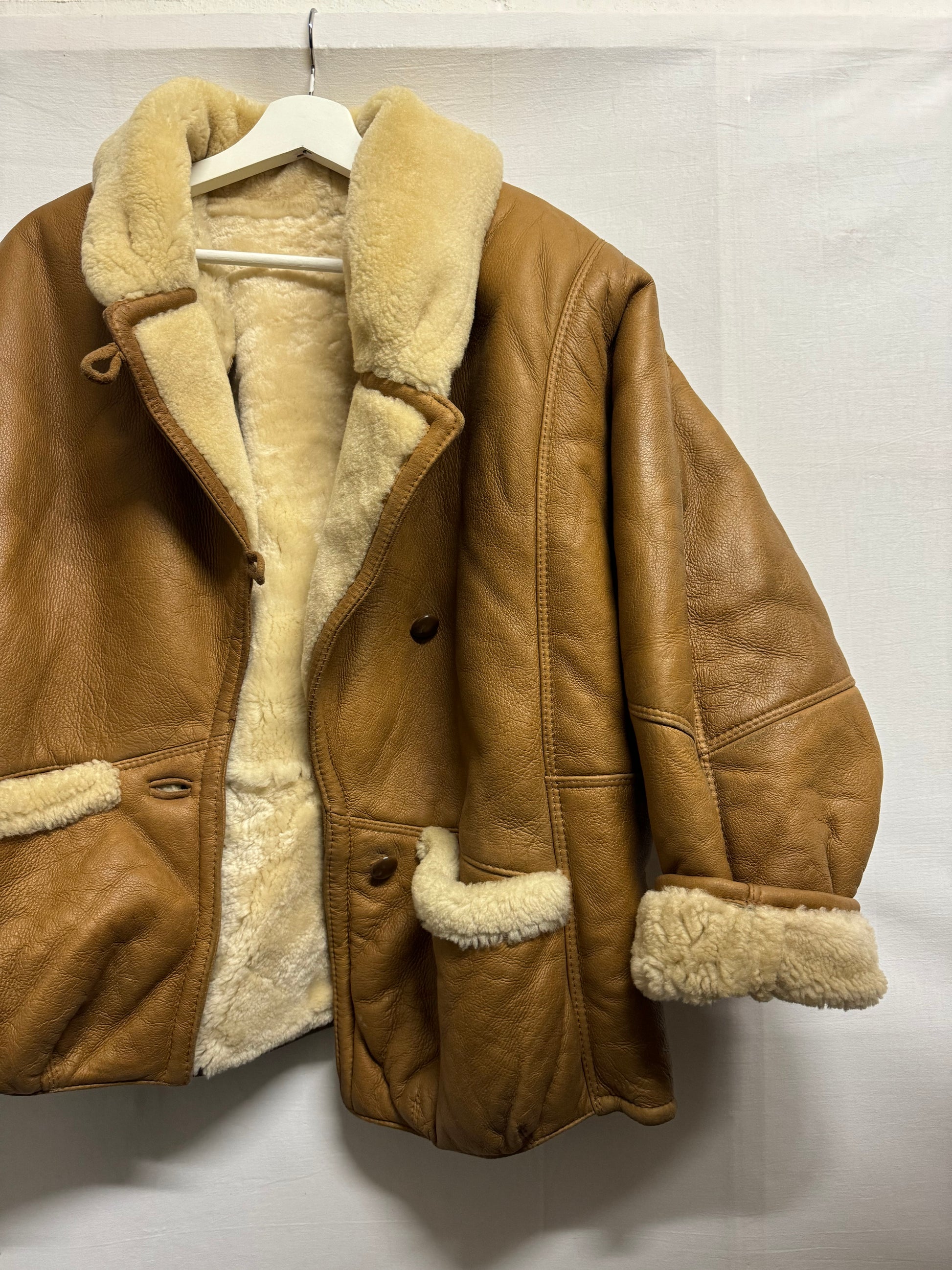 Montone aviator originale Shearling in pelle caramello, rara taglia piccola da donna