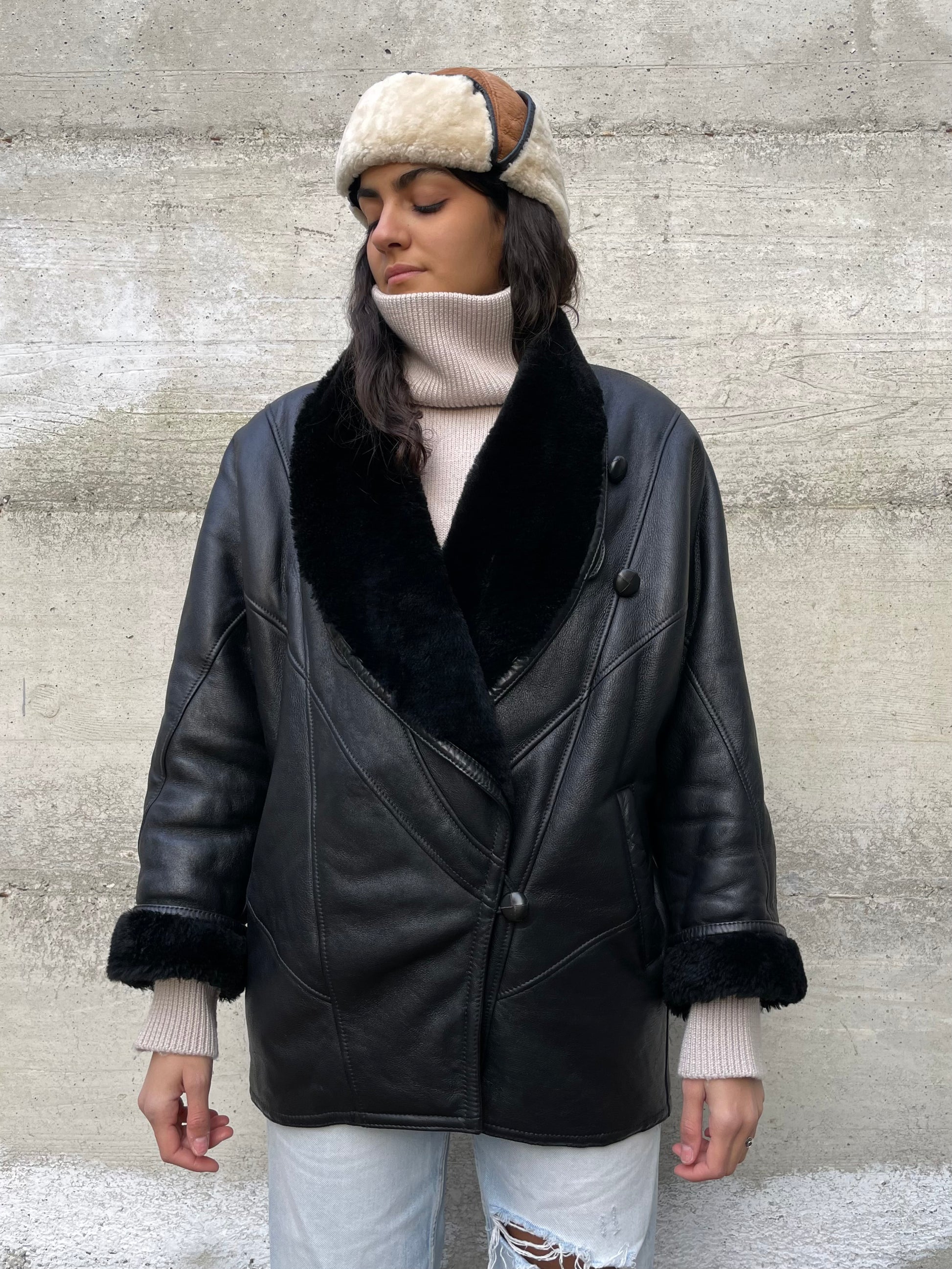 Montone donna originale Shearling 80s, esterno in pelle e interno a pelo raso, in rara taglia piccola