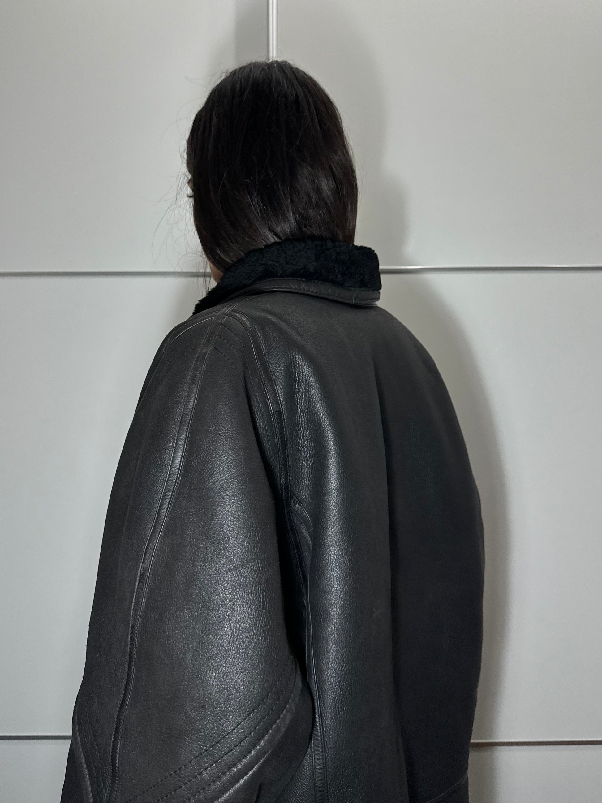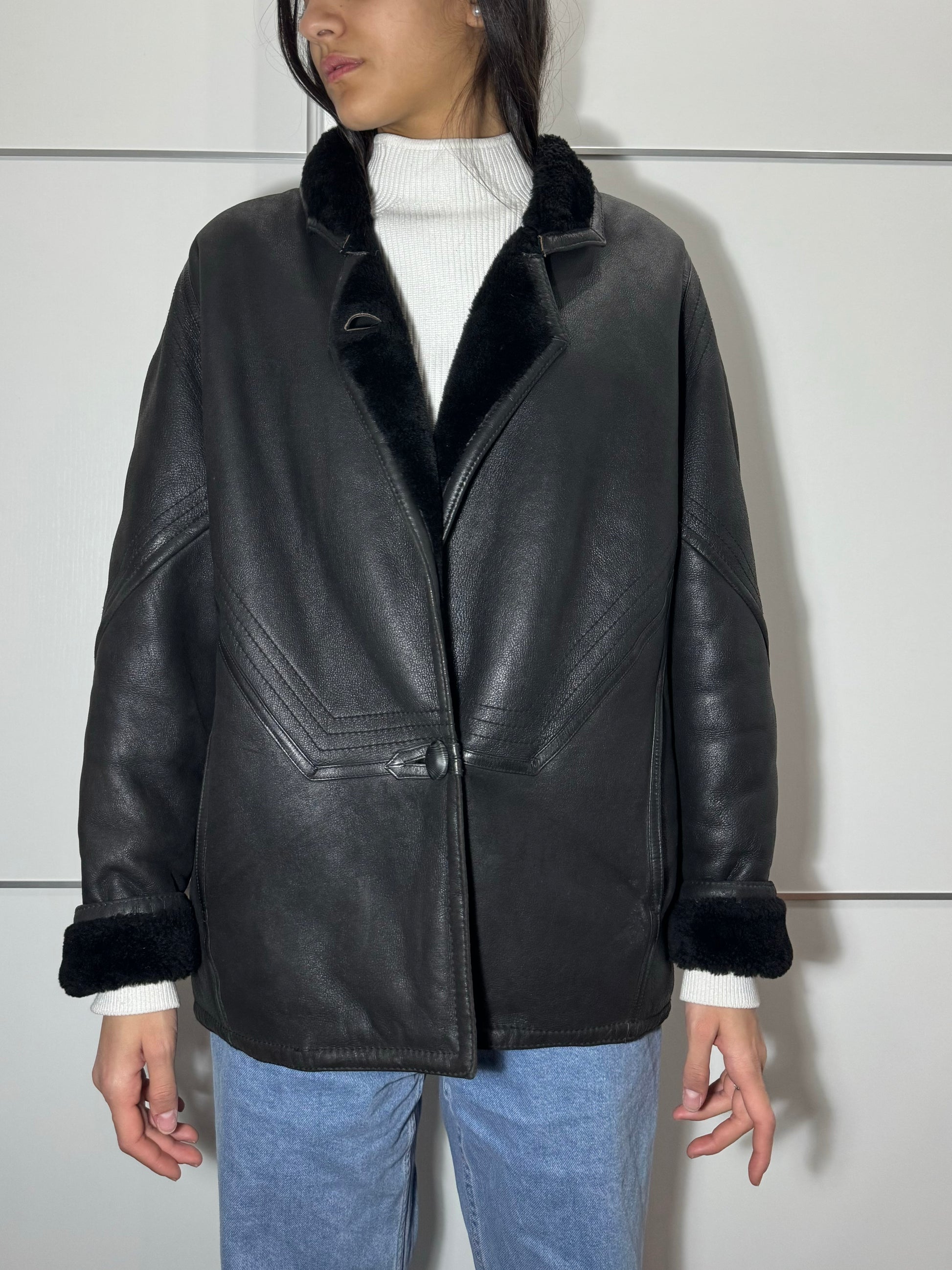 Modello tipico degli anni 80, esterno in pelle conciata a nappa (morbidissima e leggera) interno a pelo raso nero.