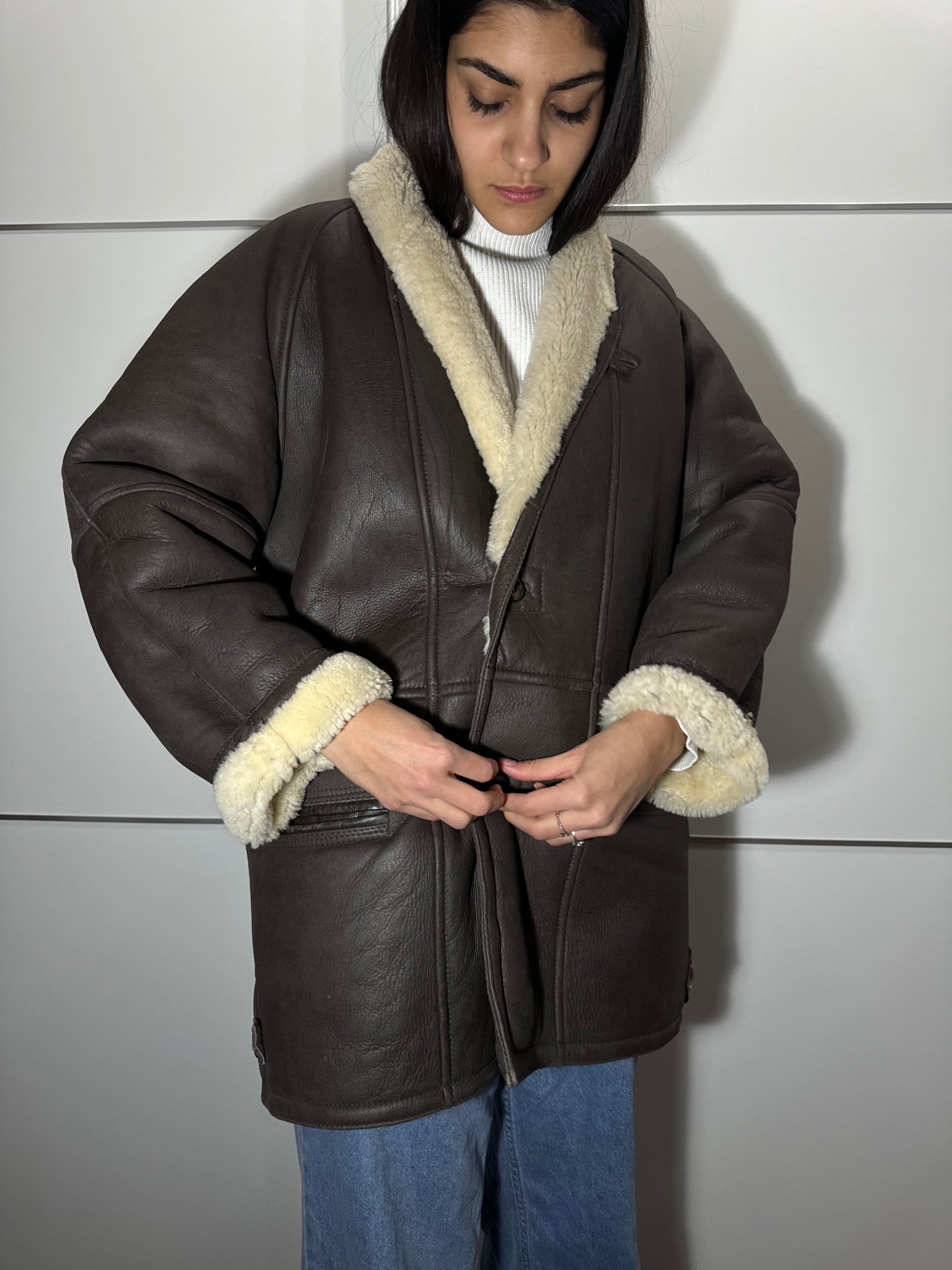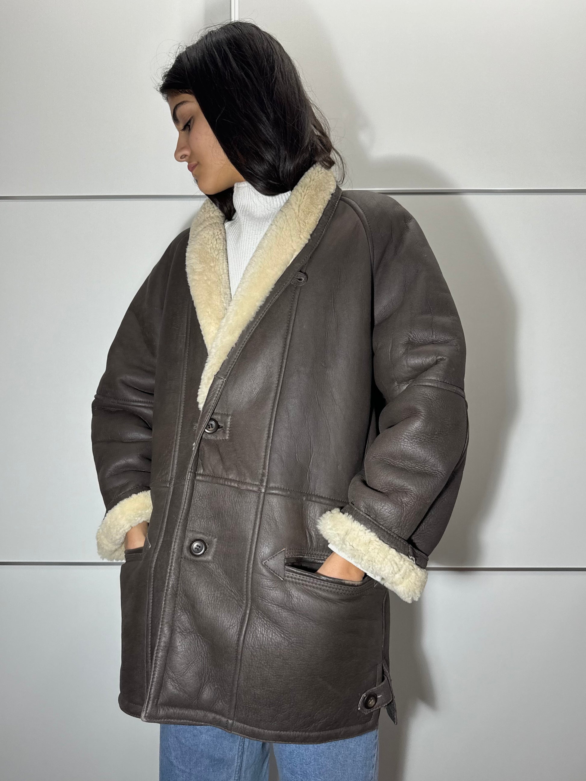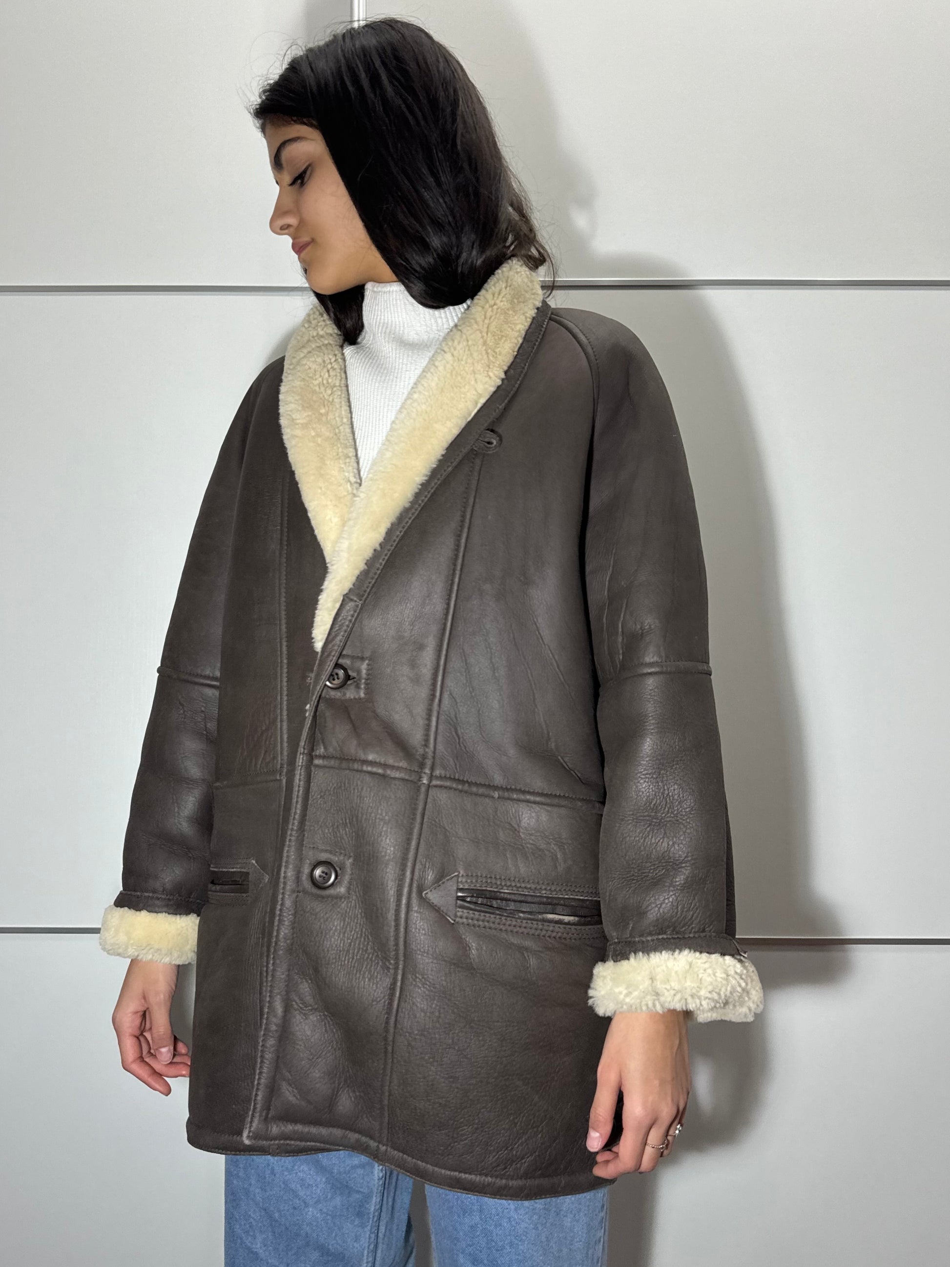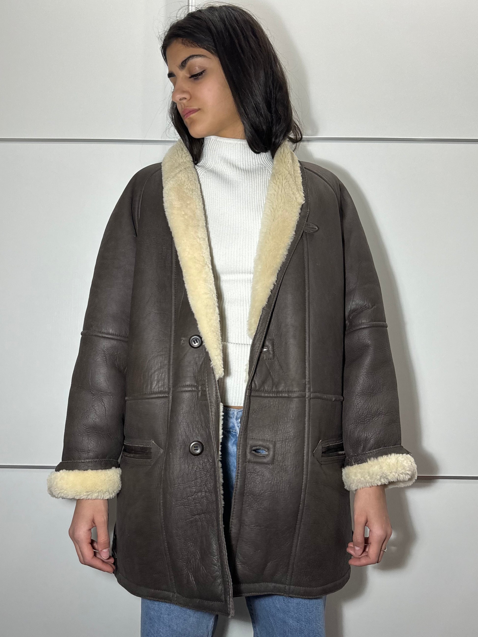 Montone originale Shearling in pelle testa di moro, taglia M uomo