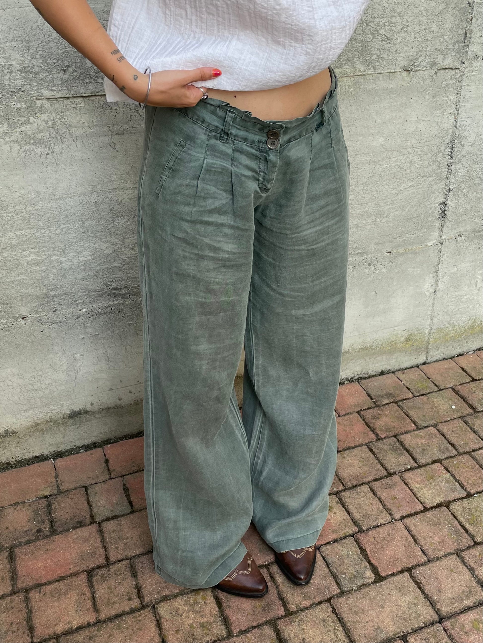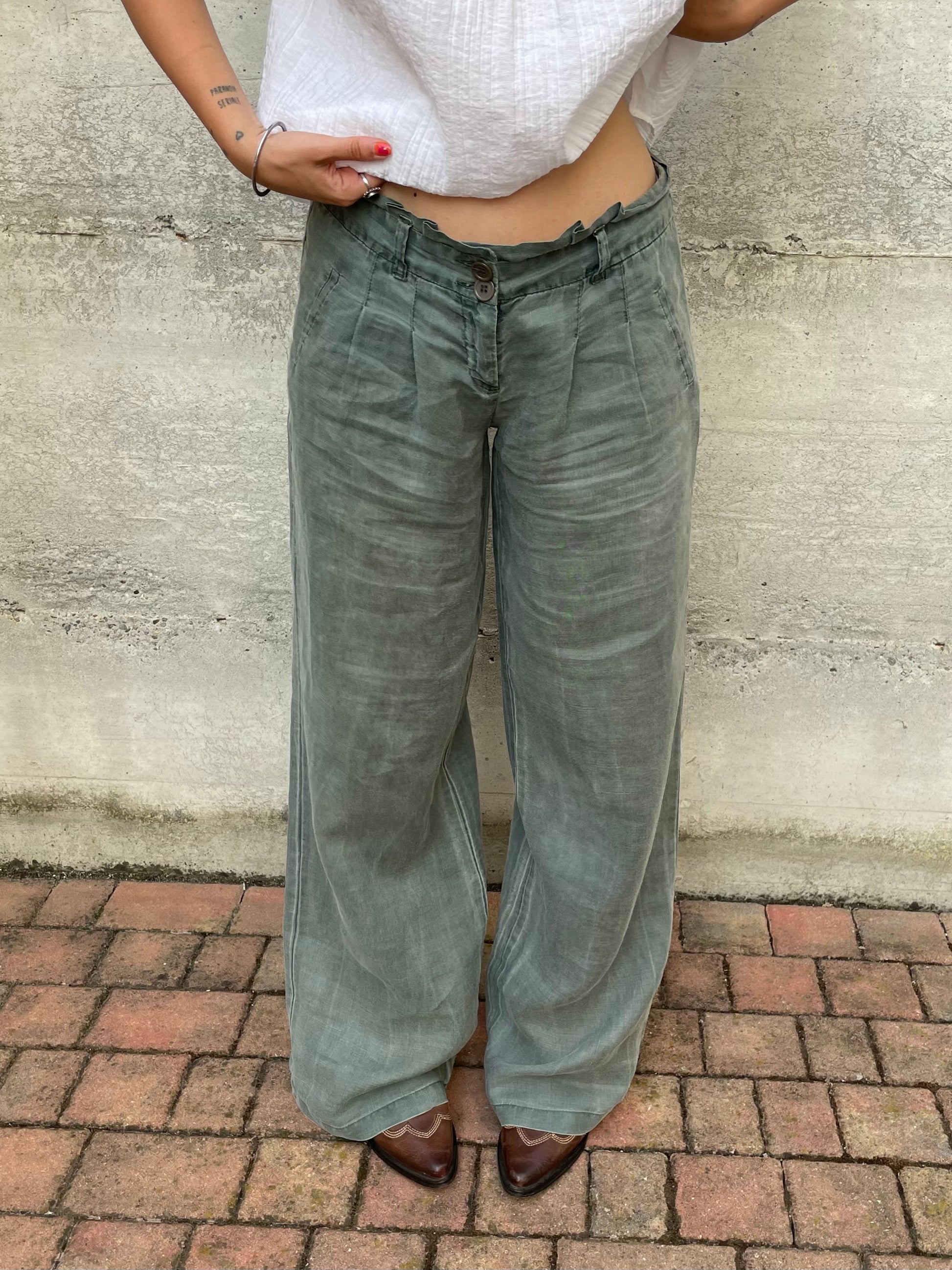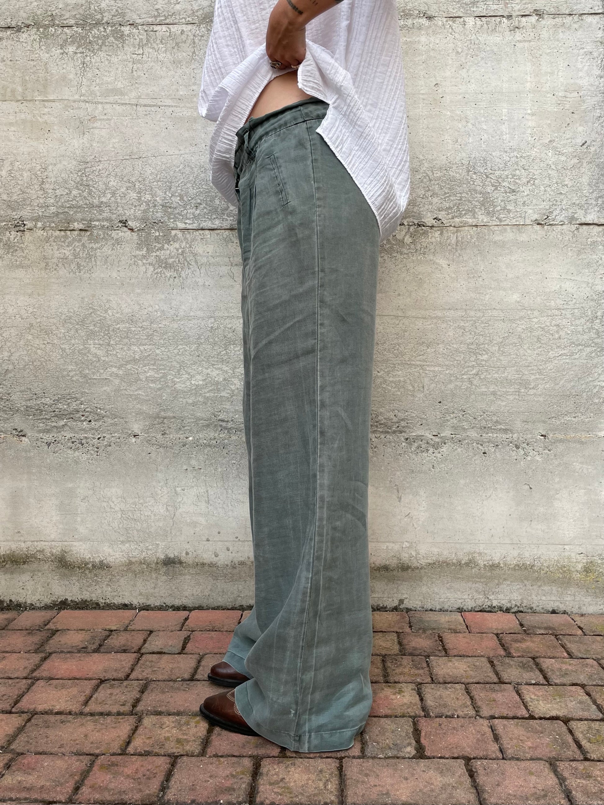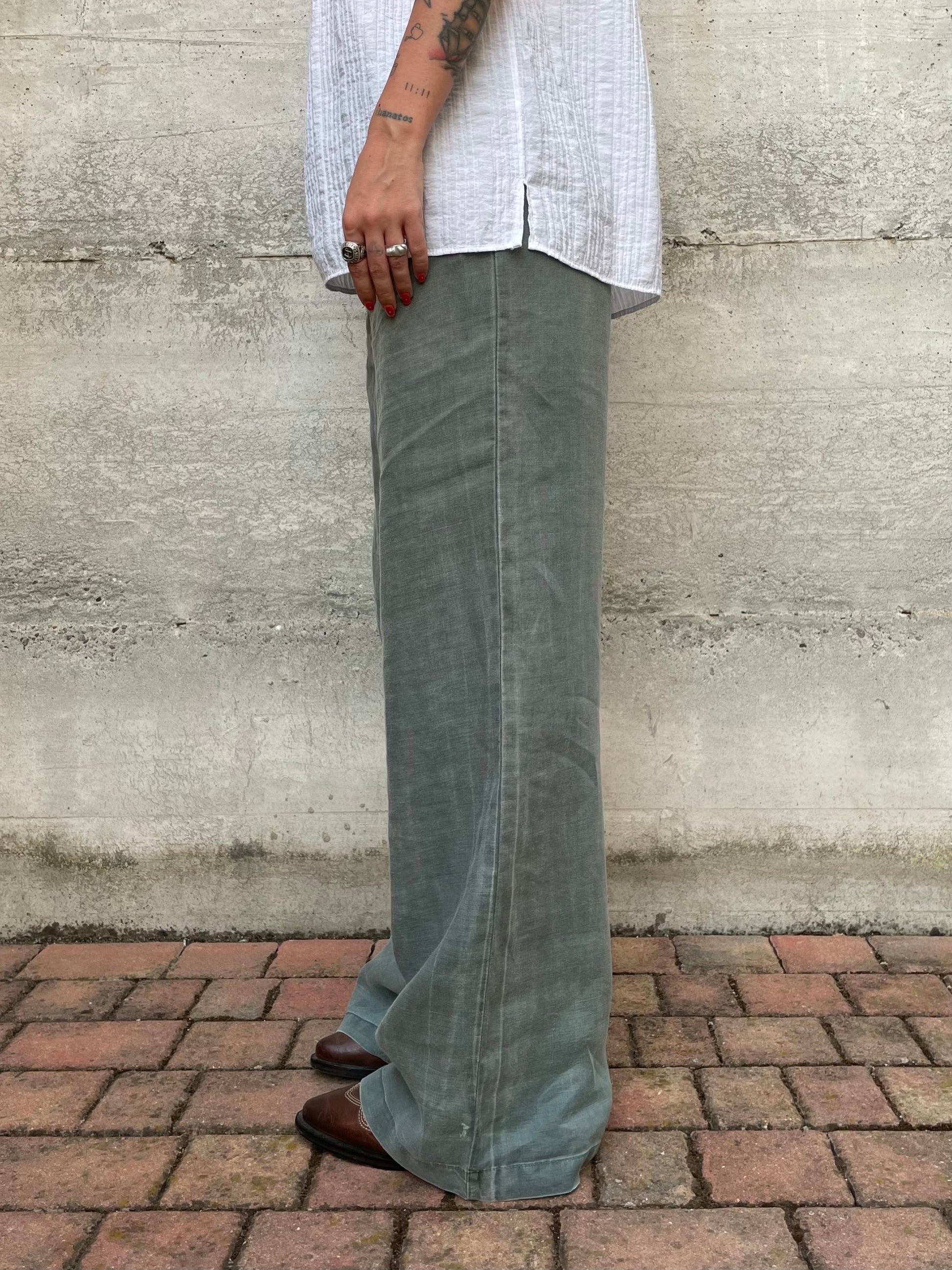Pantapalazzo verde salvia 100% ramiè, taglia M