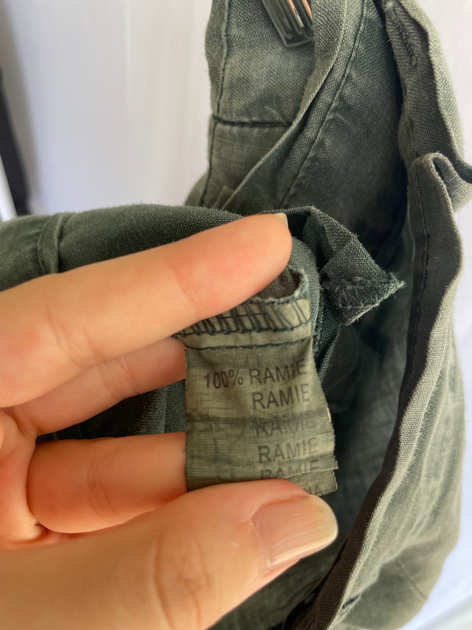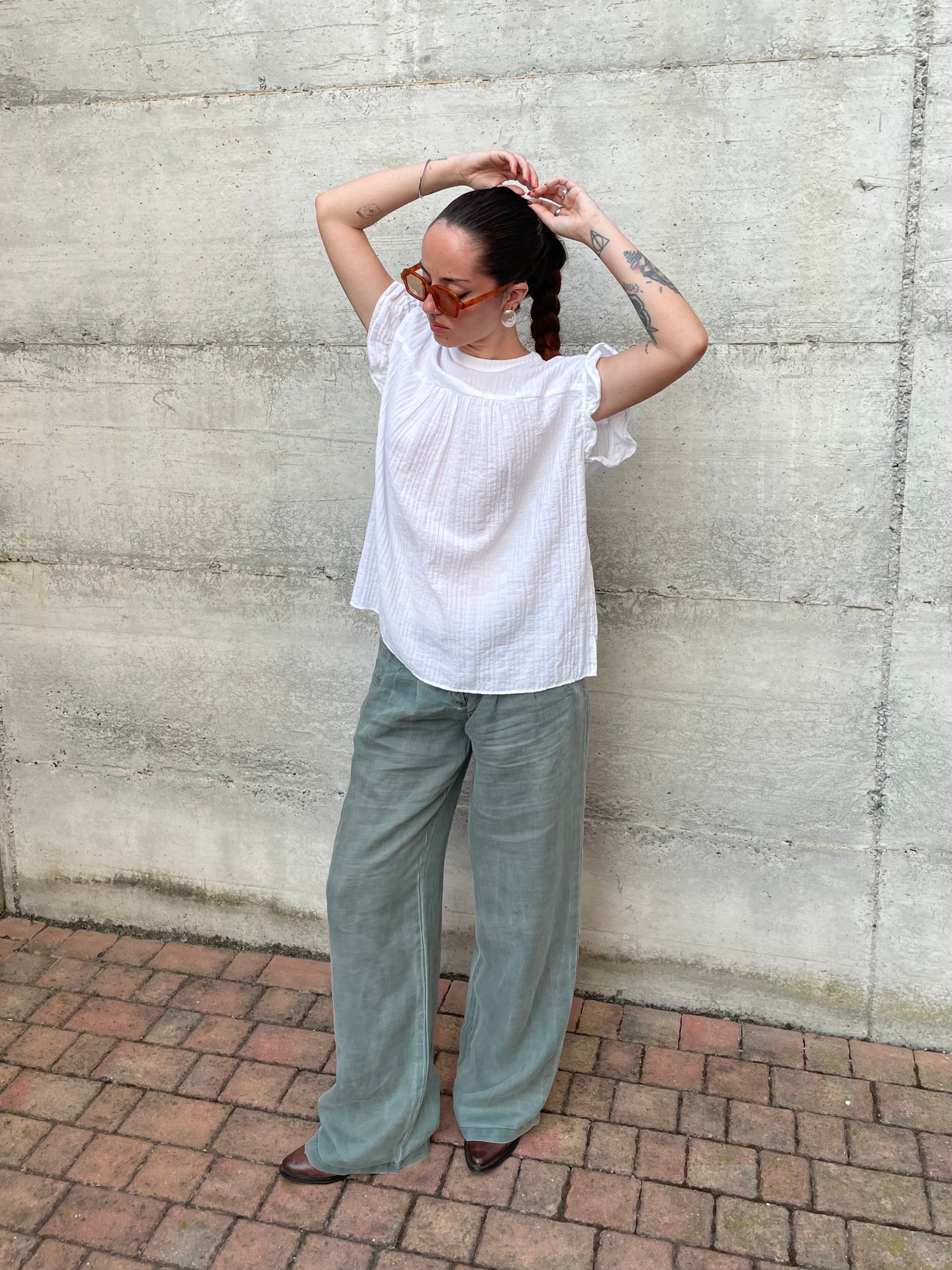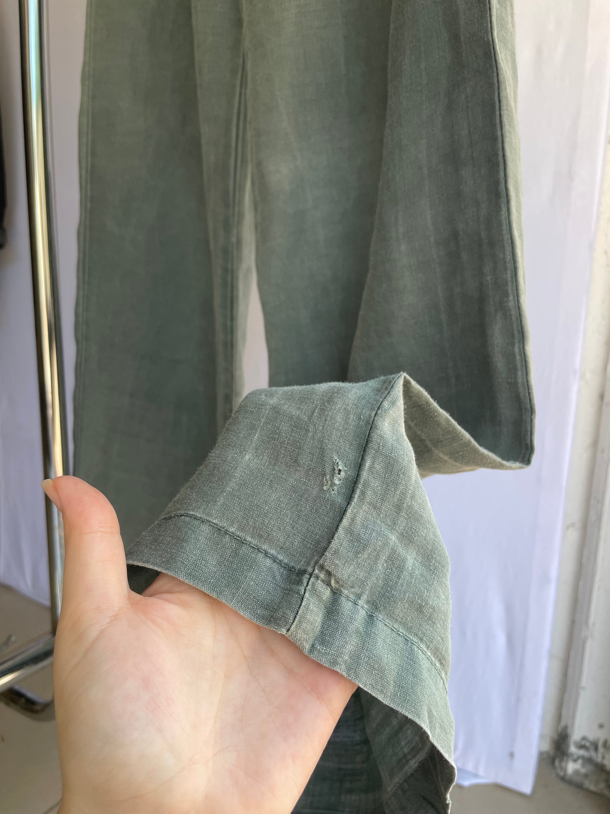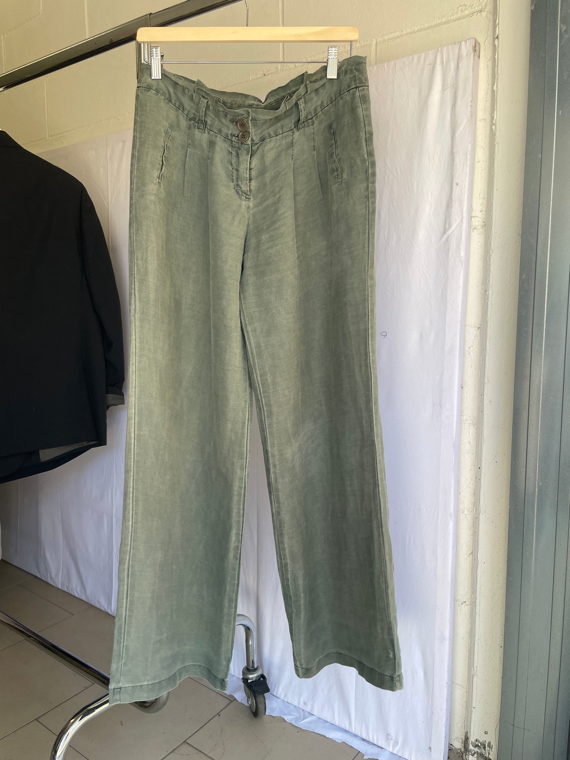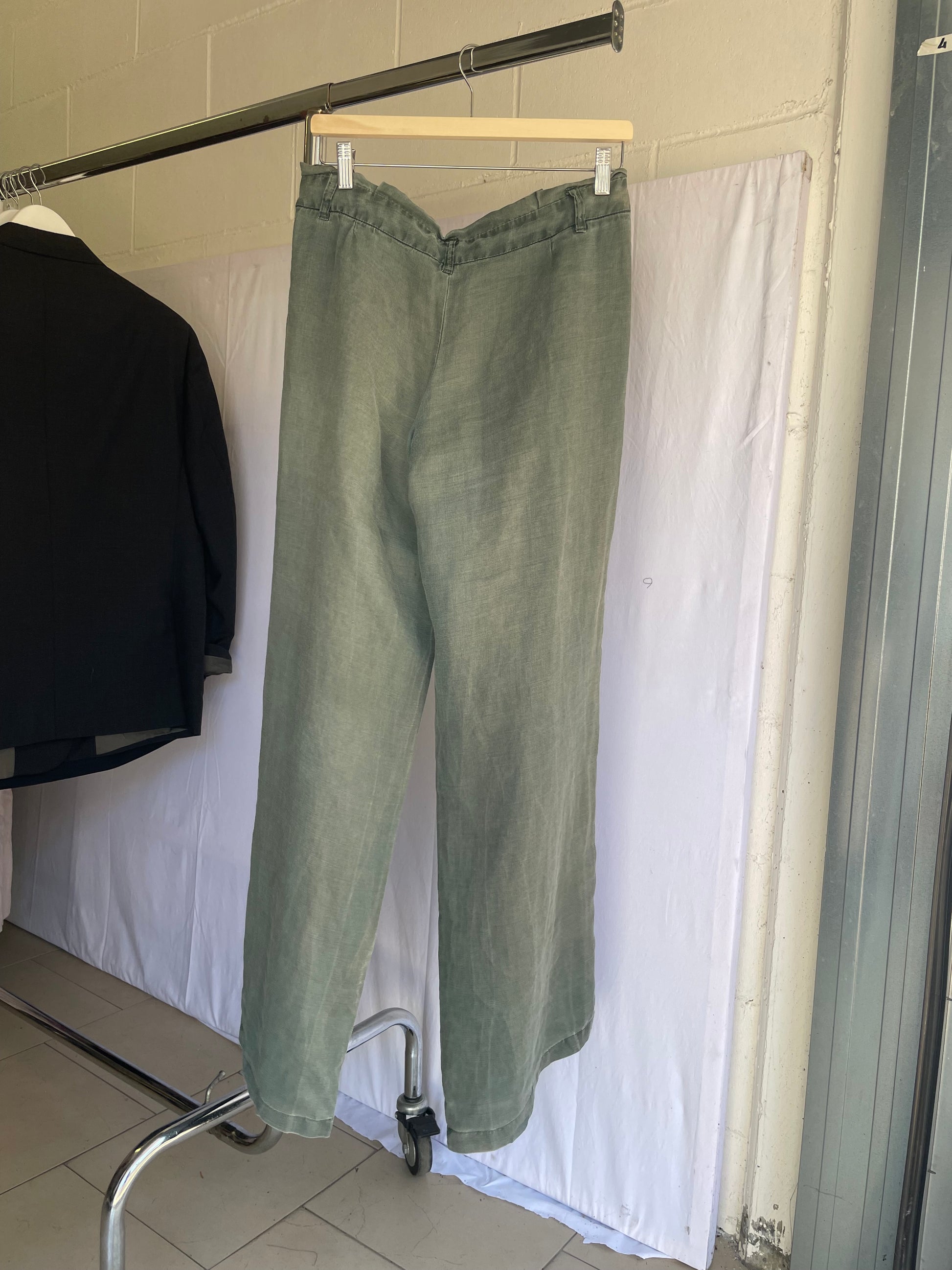 Pantapalazzo verde salvia 100% ramiè, taglia M