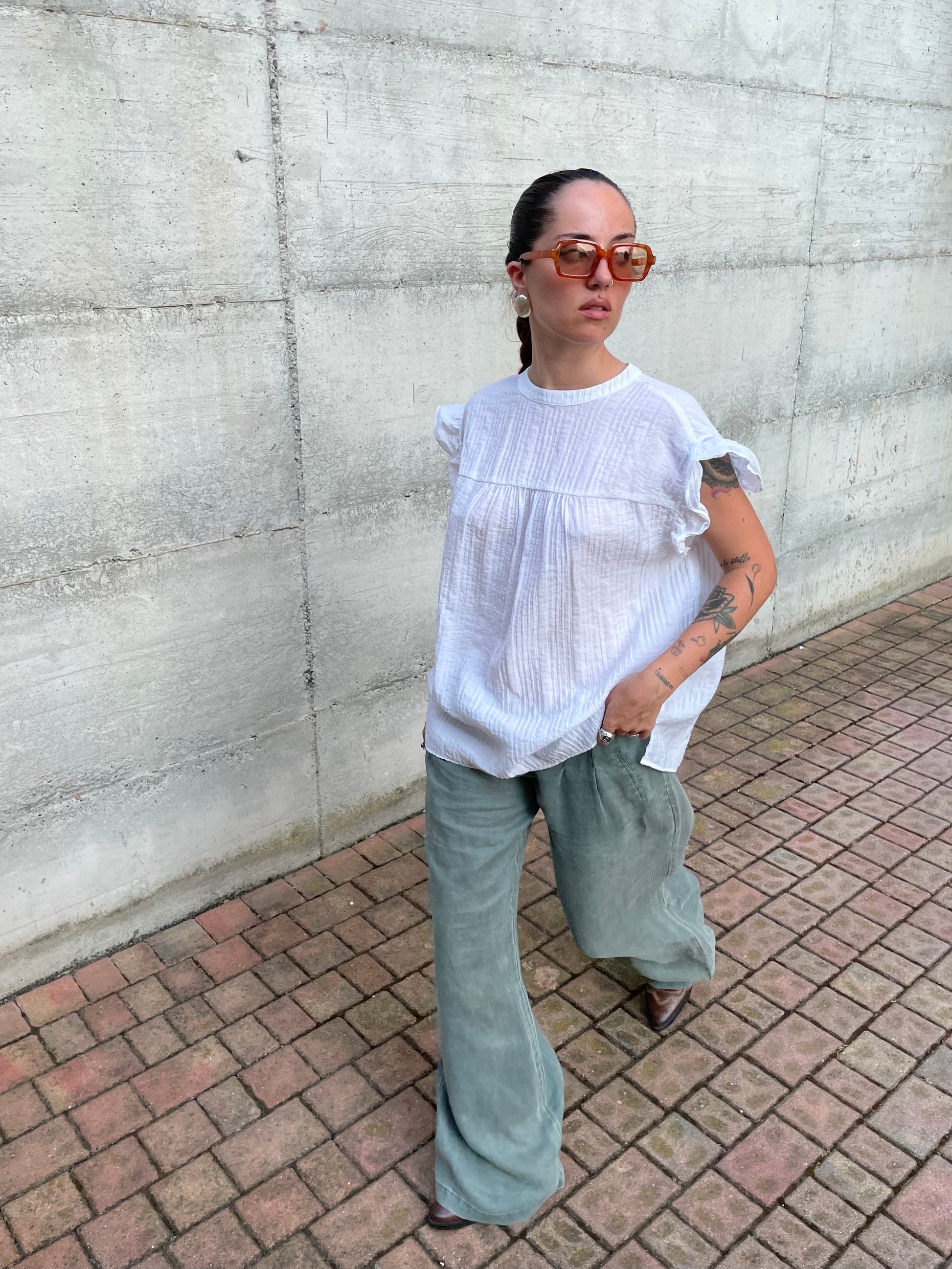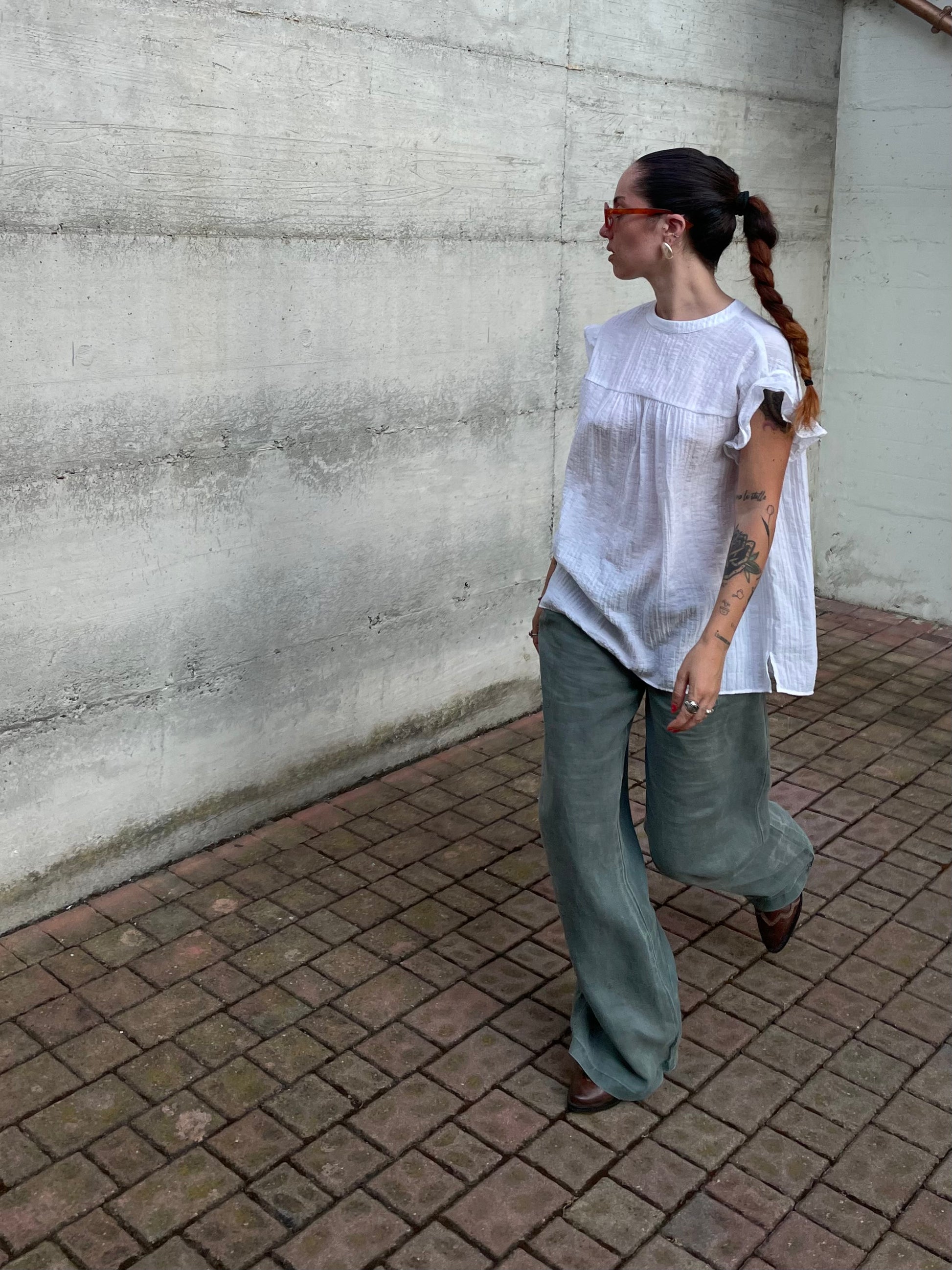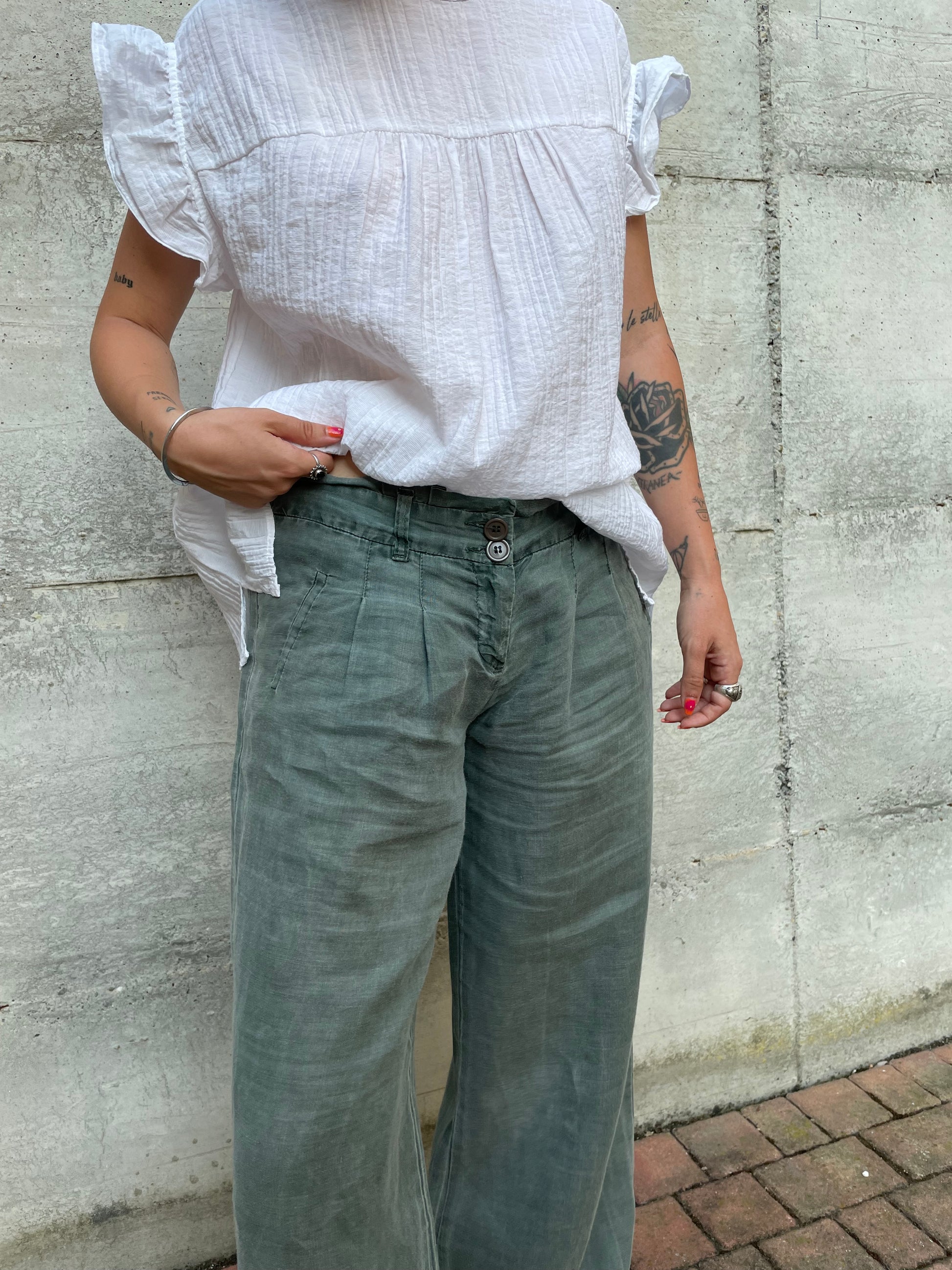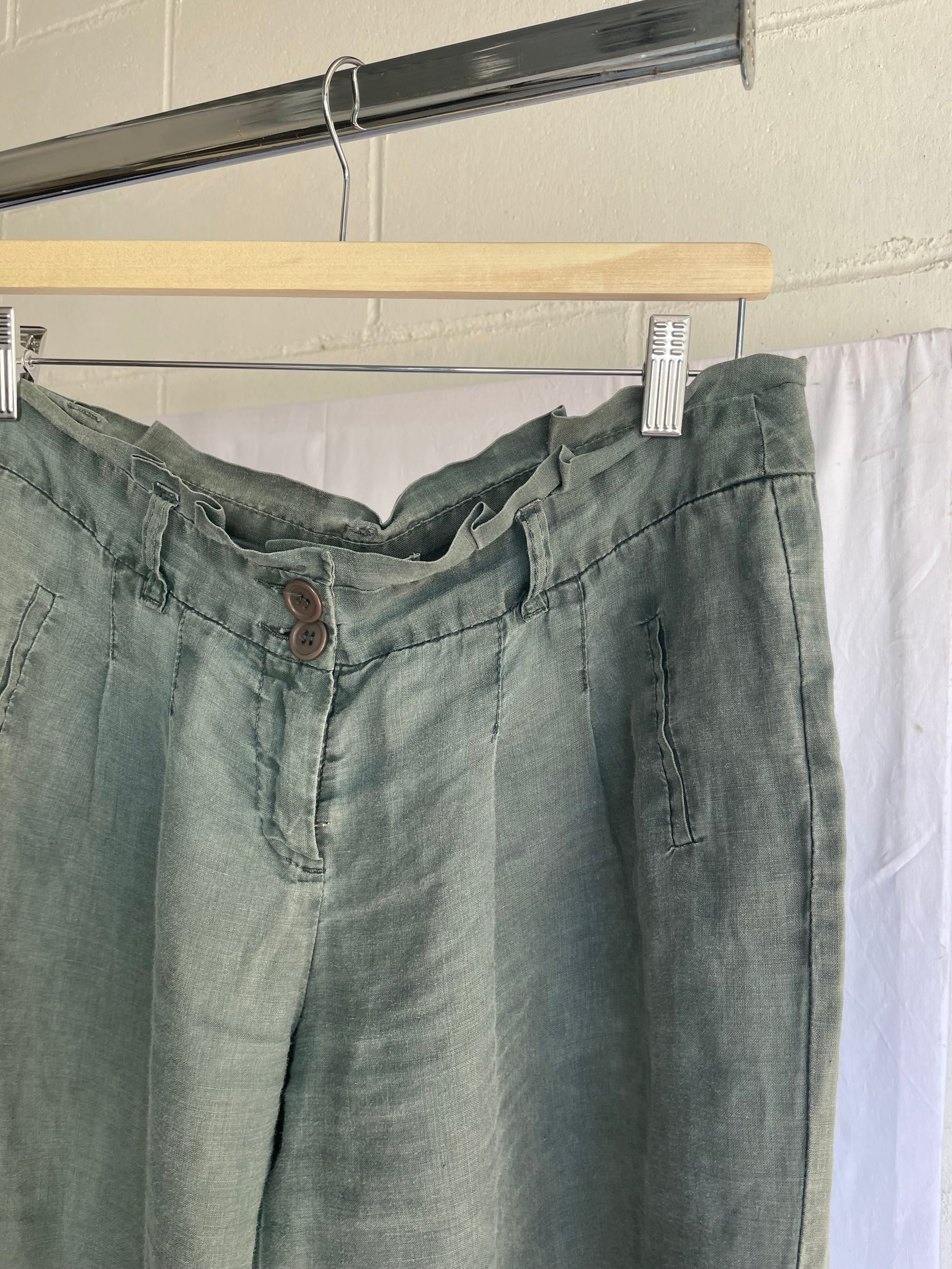 Pantapalazzo verde salvia 100% ramiè, taglia M