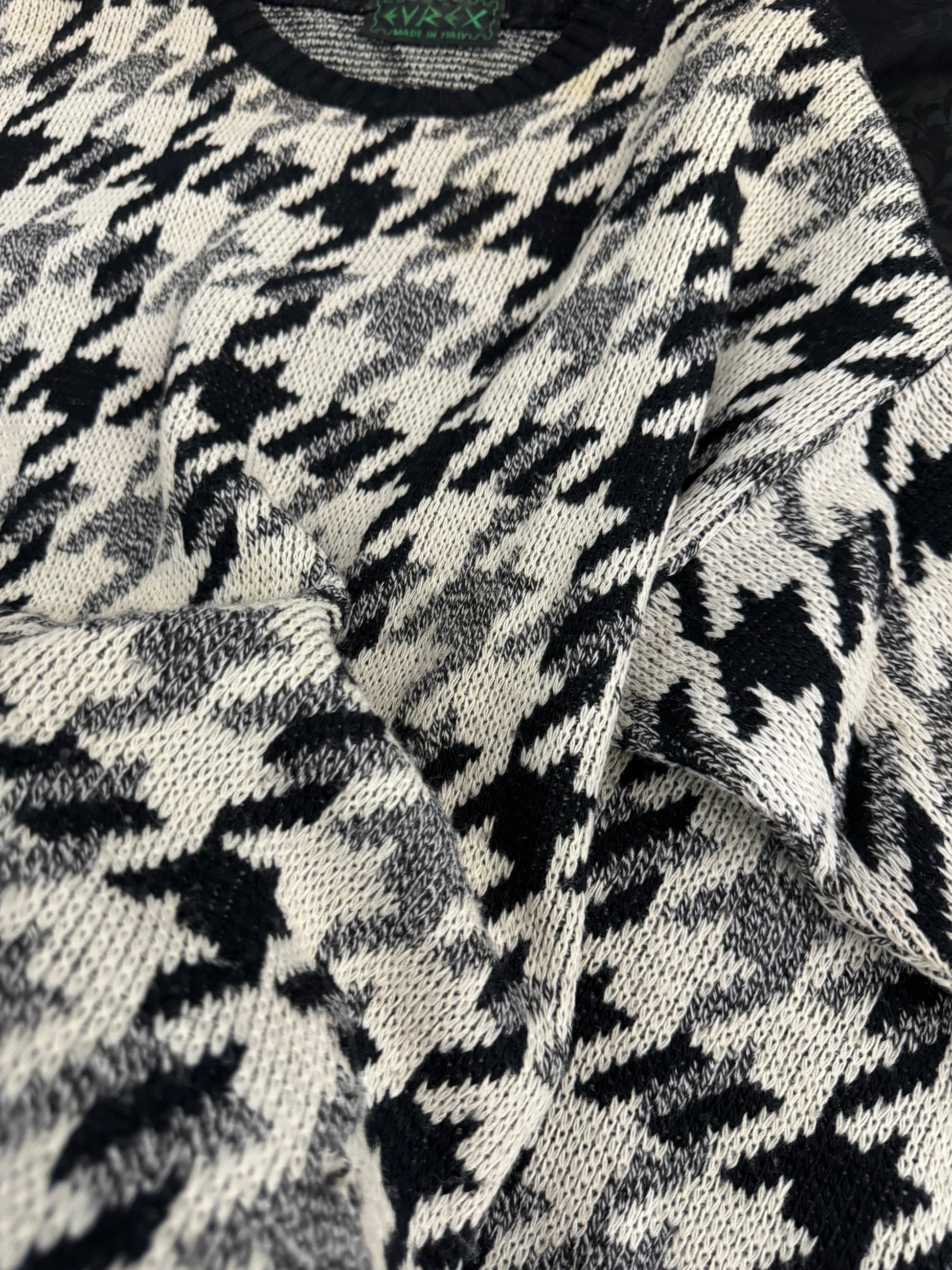 Pullover girocollo pied de poule in misto lana