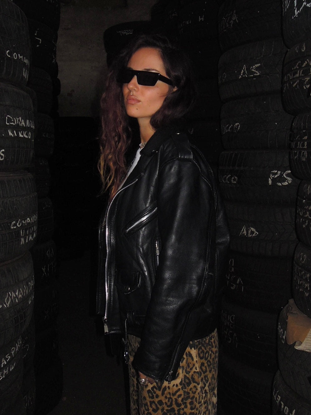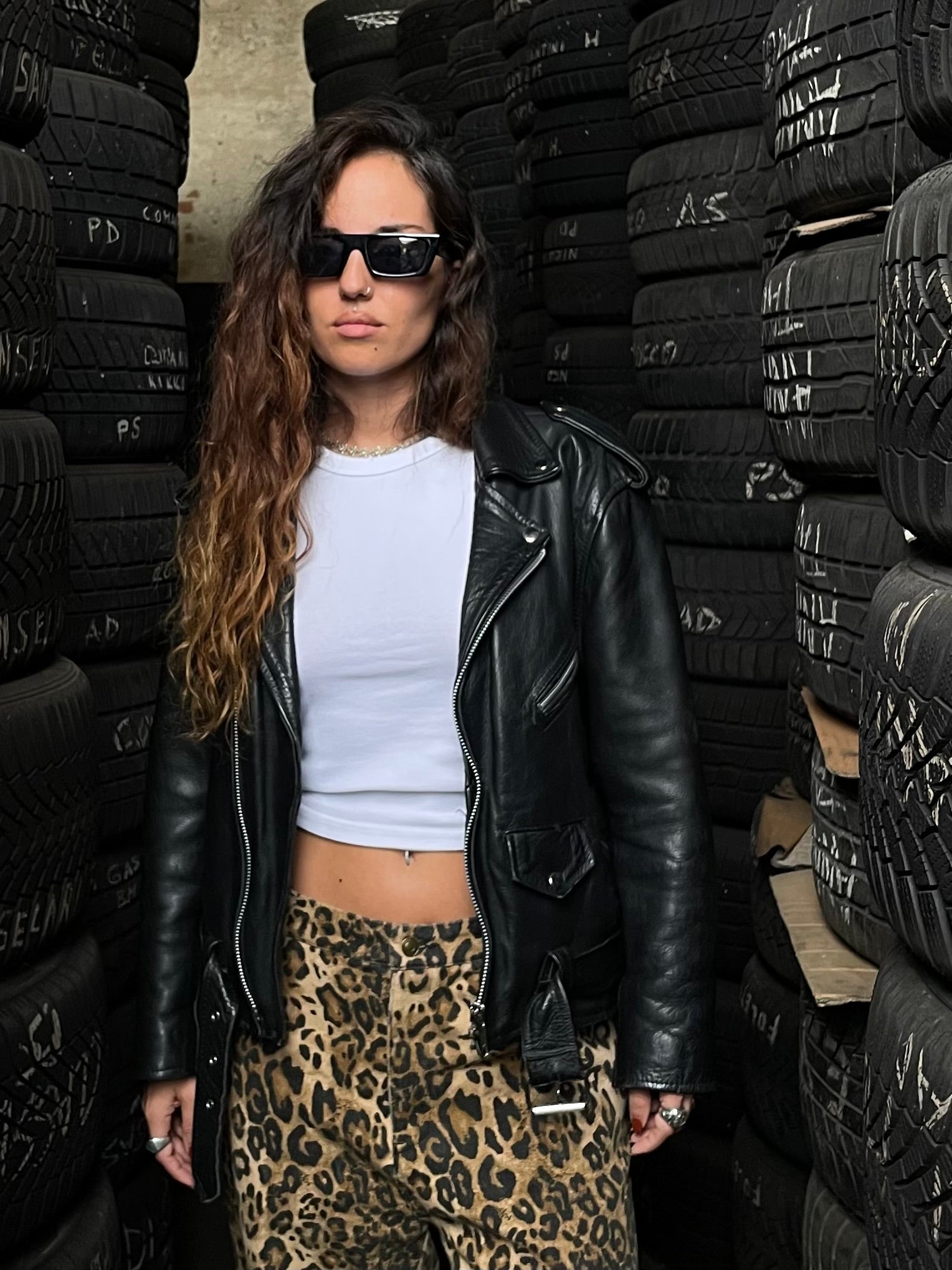 Chiodo vintage nero in vera pelle di suino (quella tipica da biker, più spessa e resistente ma NON rigida o troppo pesante)
