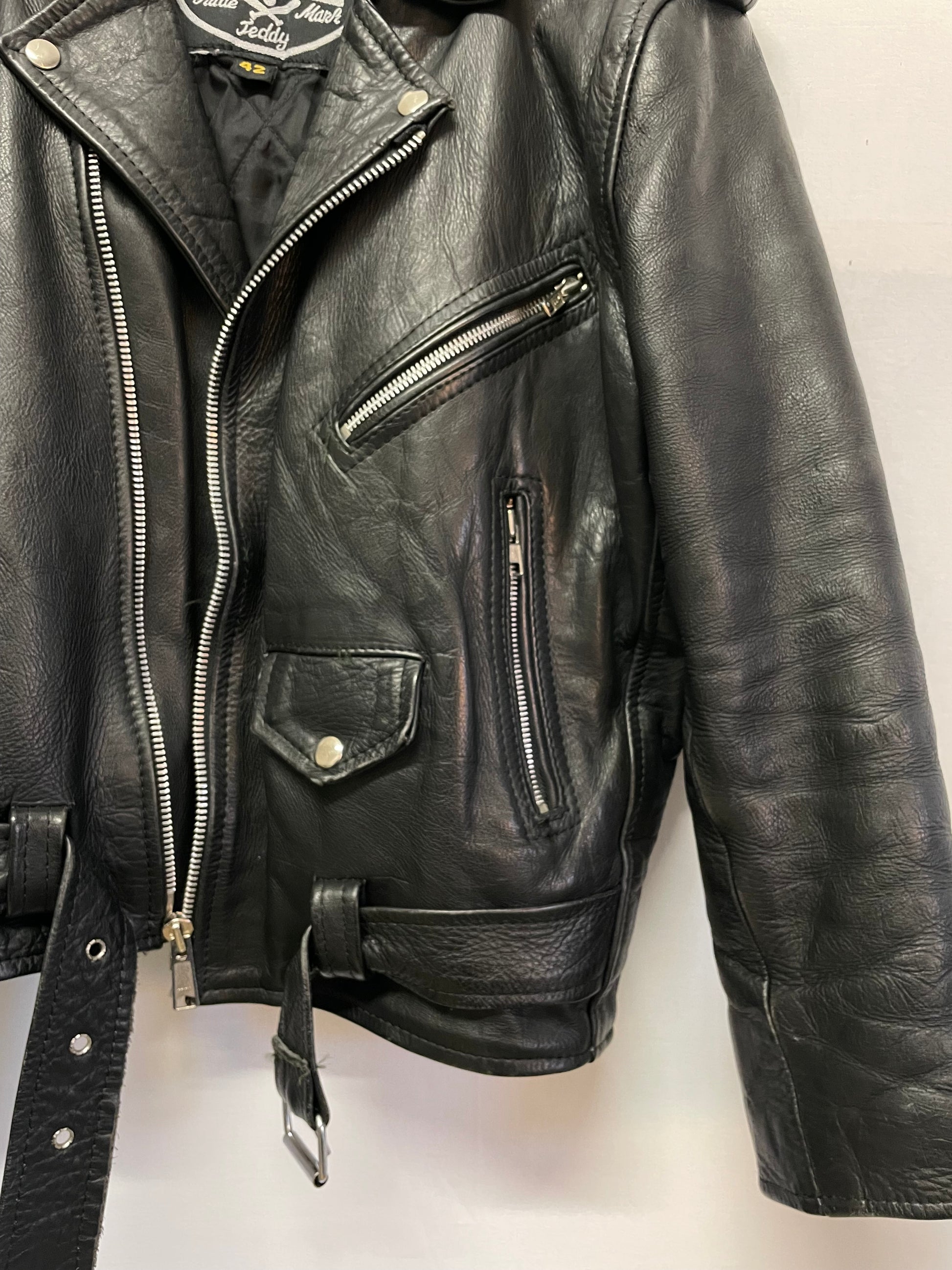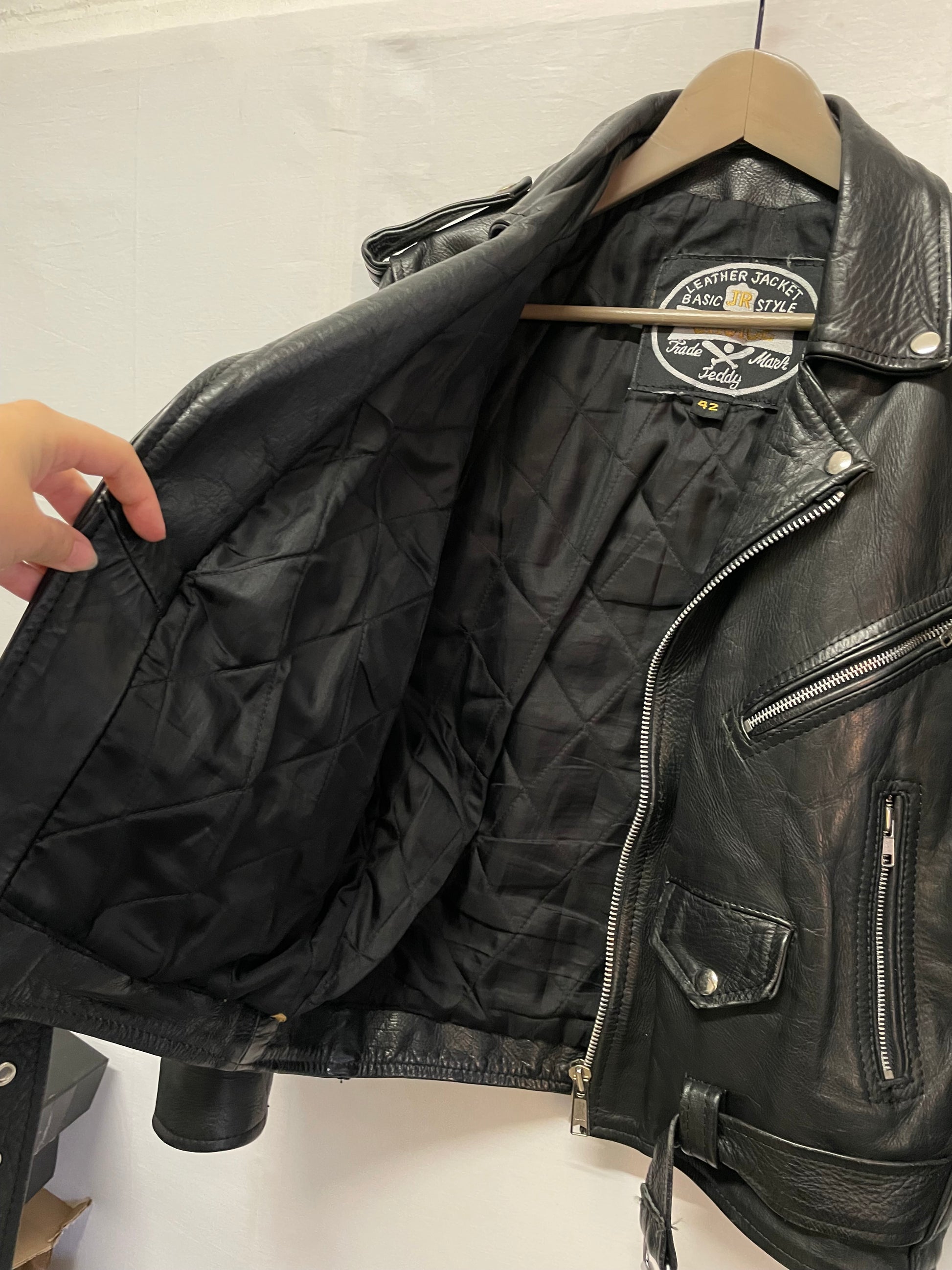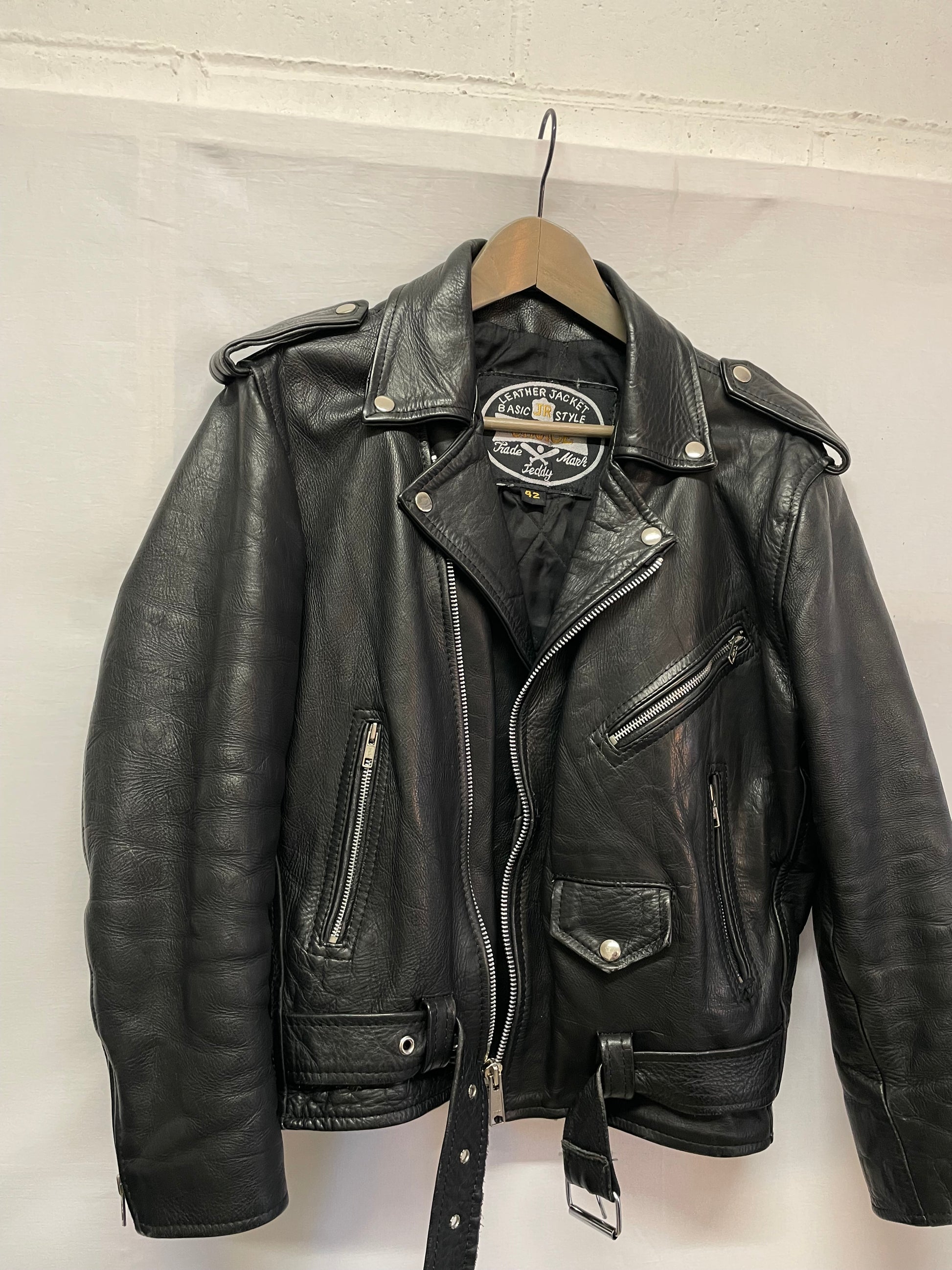 RARO chiodo vintage nero vera pelle in taglia piccola - XS uomo