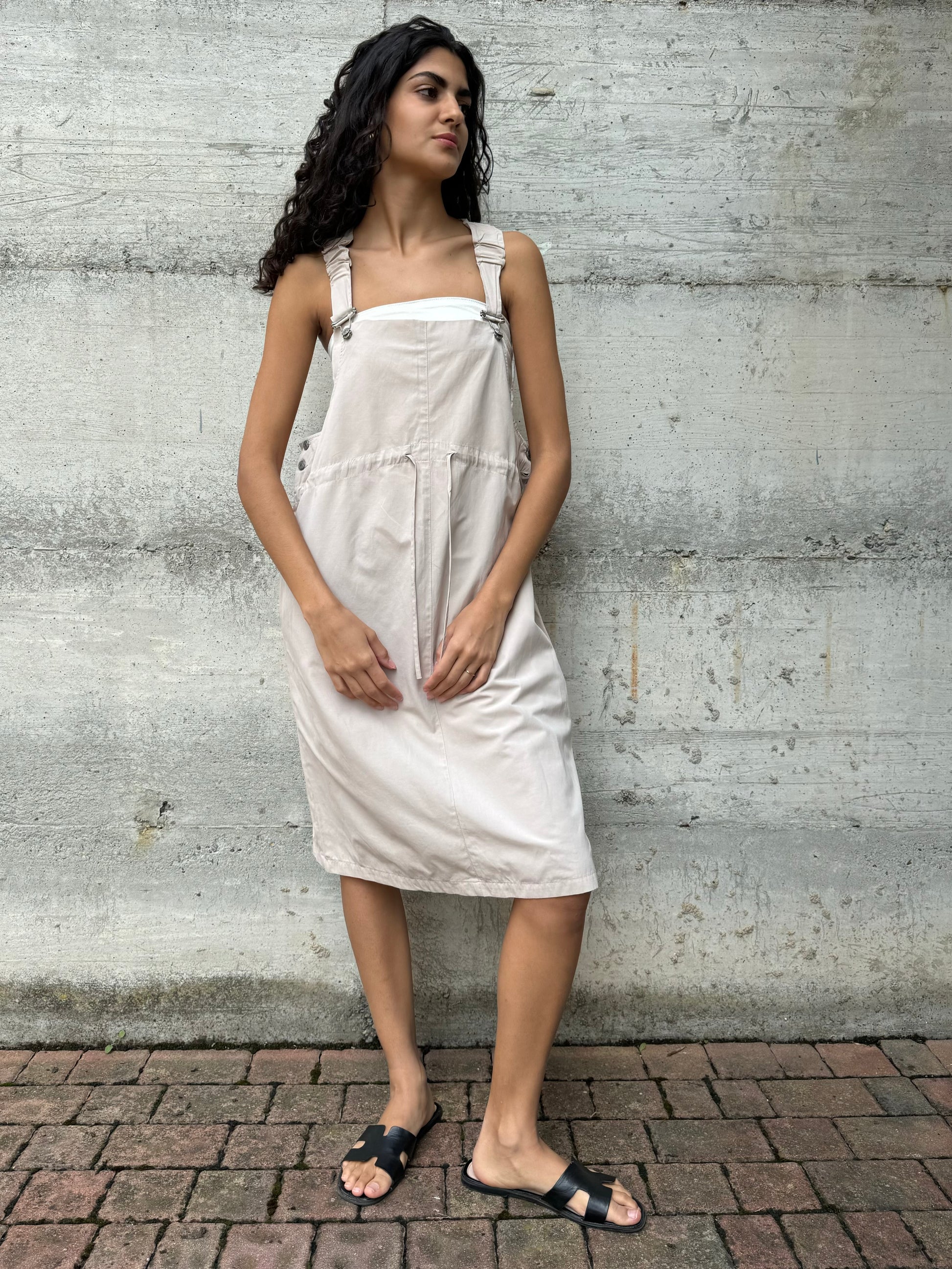 Salopette gonna midi in cotone sabbia taglia 44it