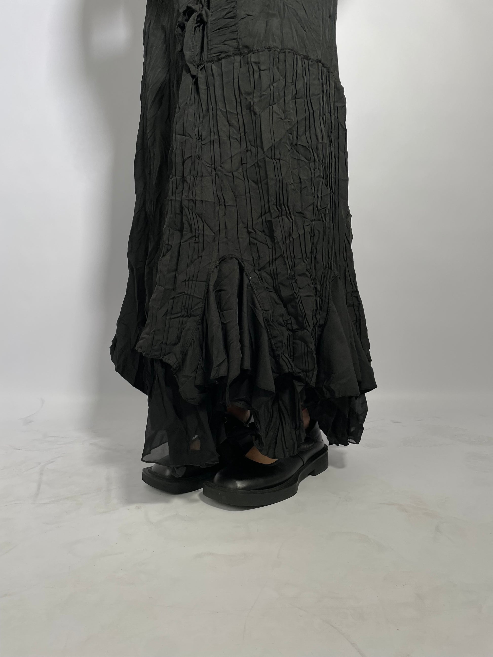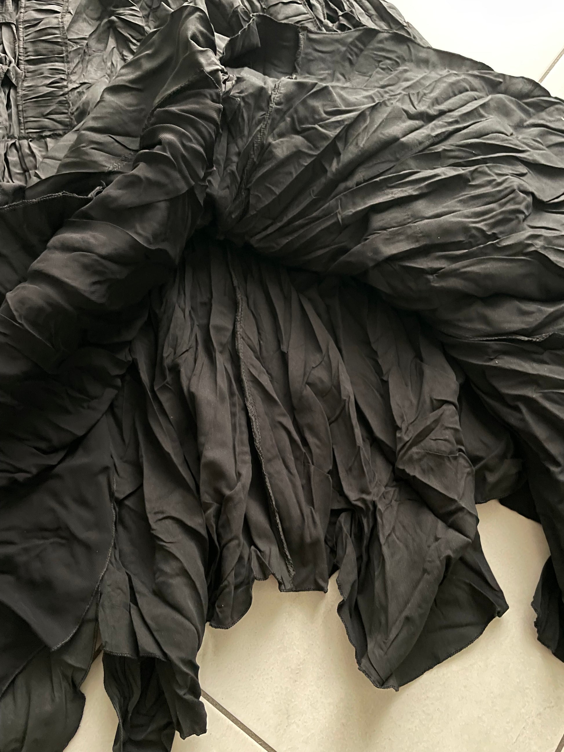 Maxi gonna lunga 100% cotone nera effetto increspato.