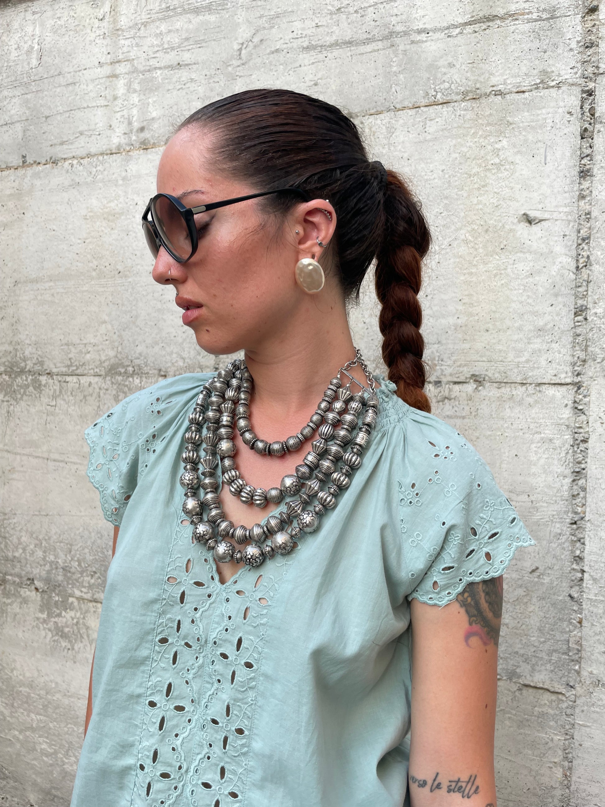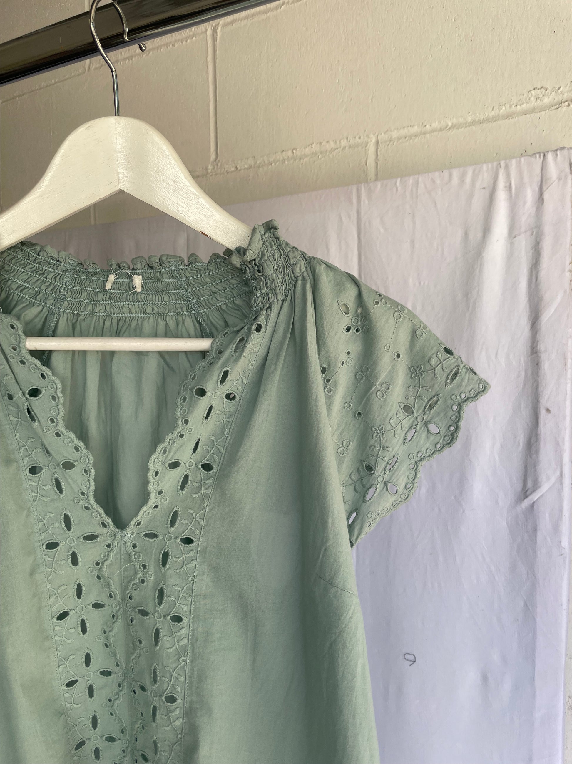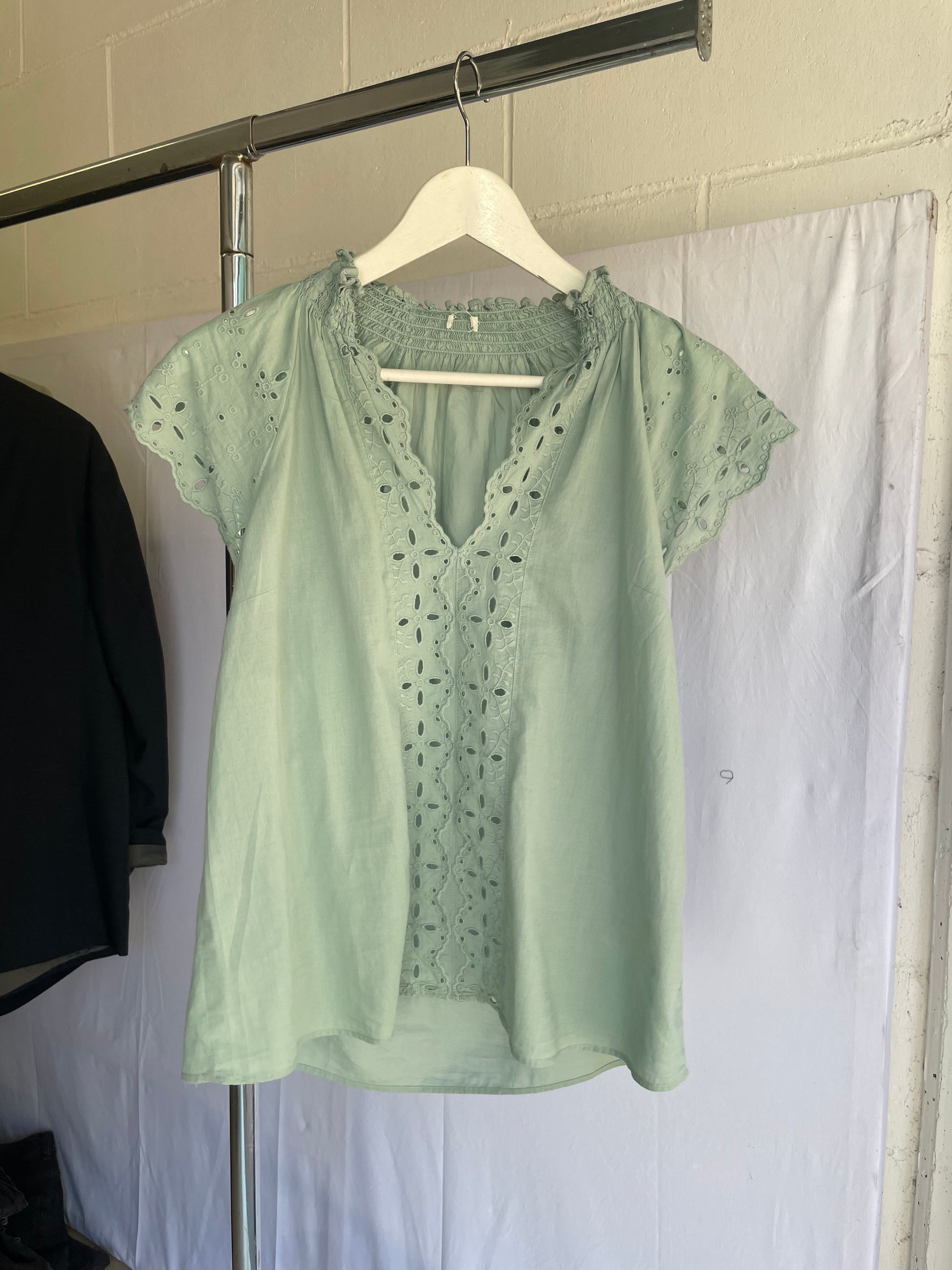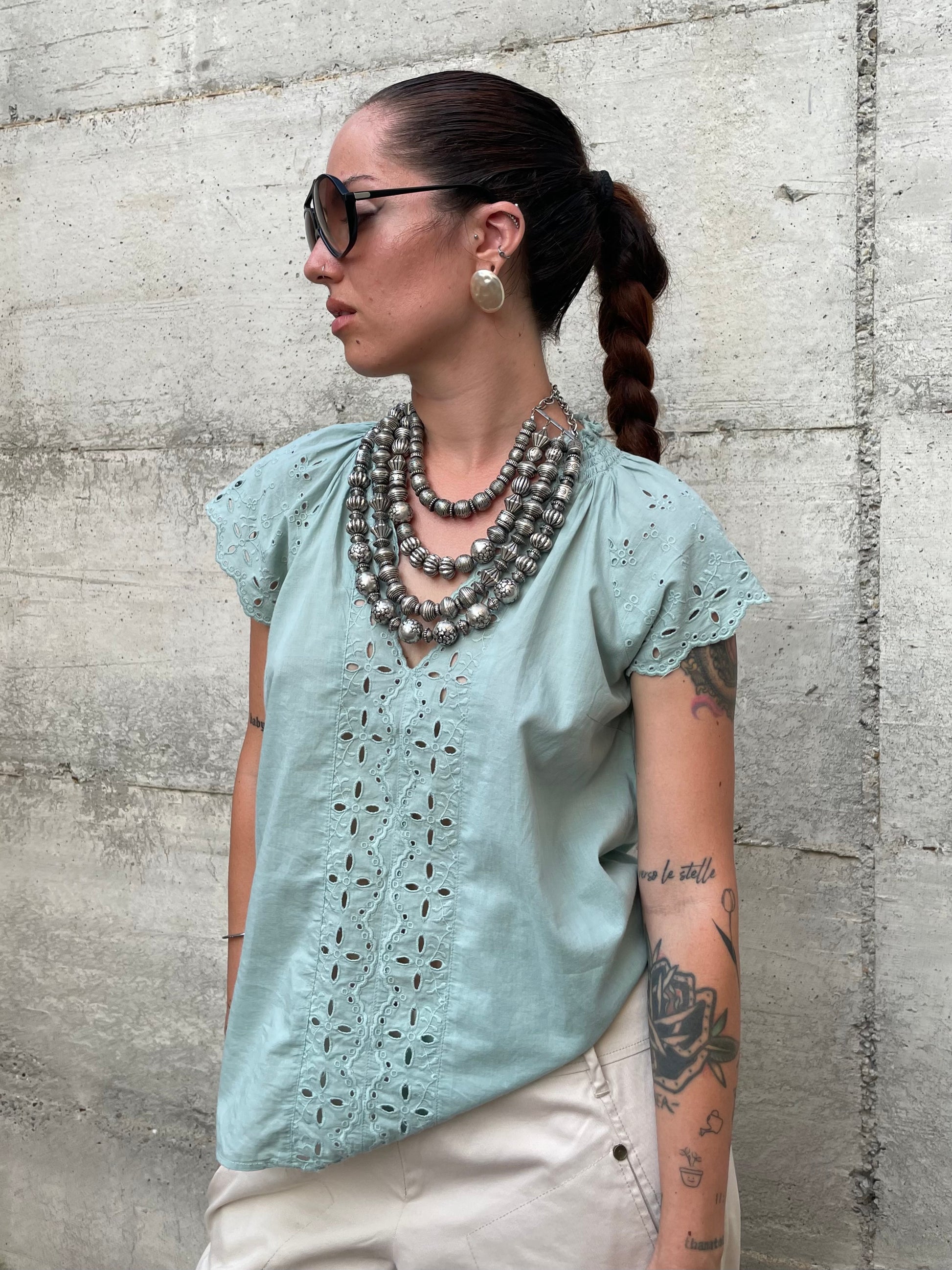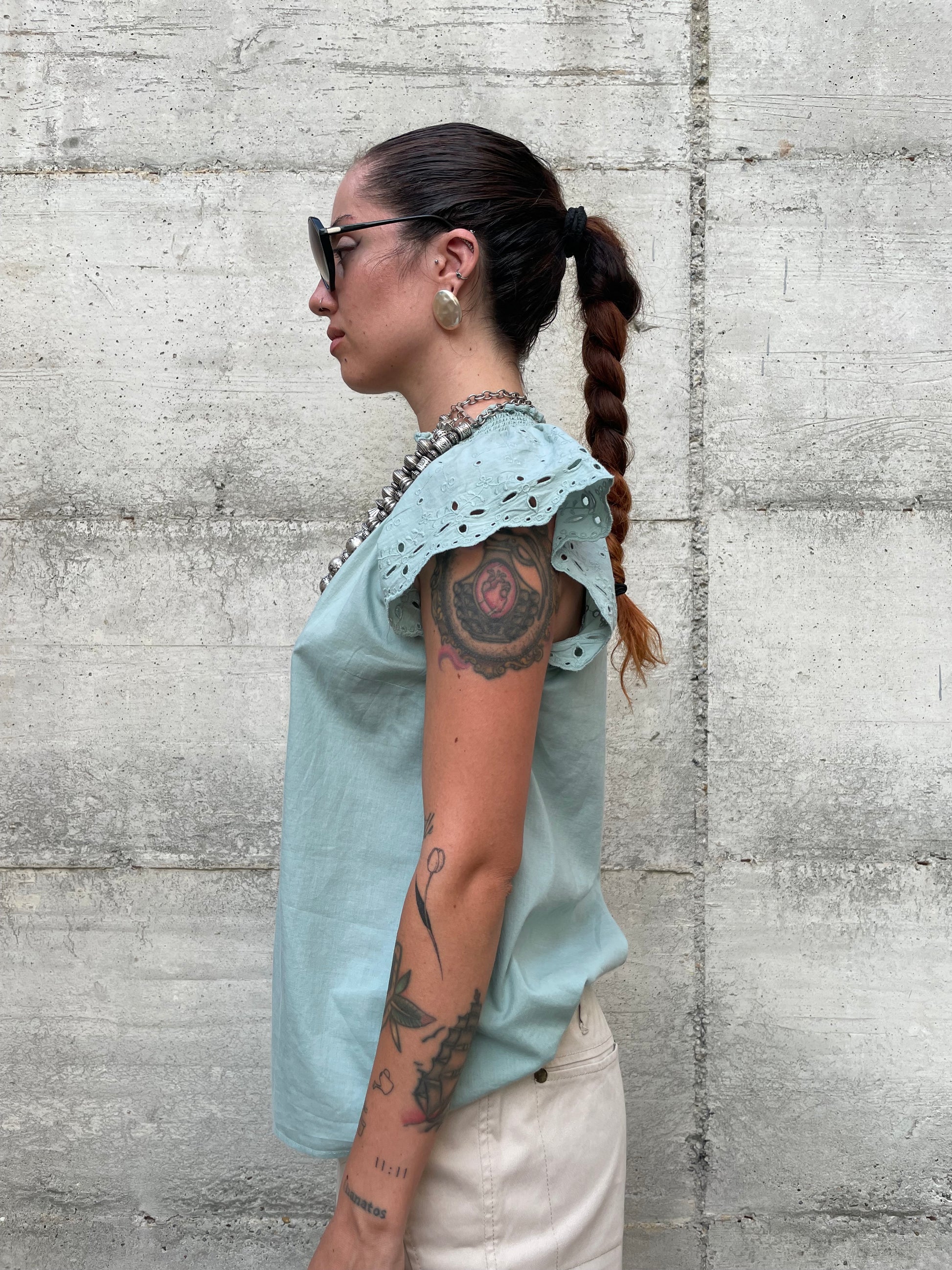 Top sangallo turchese, 100% cotone, taglia S