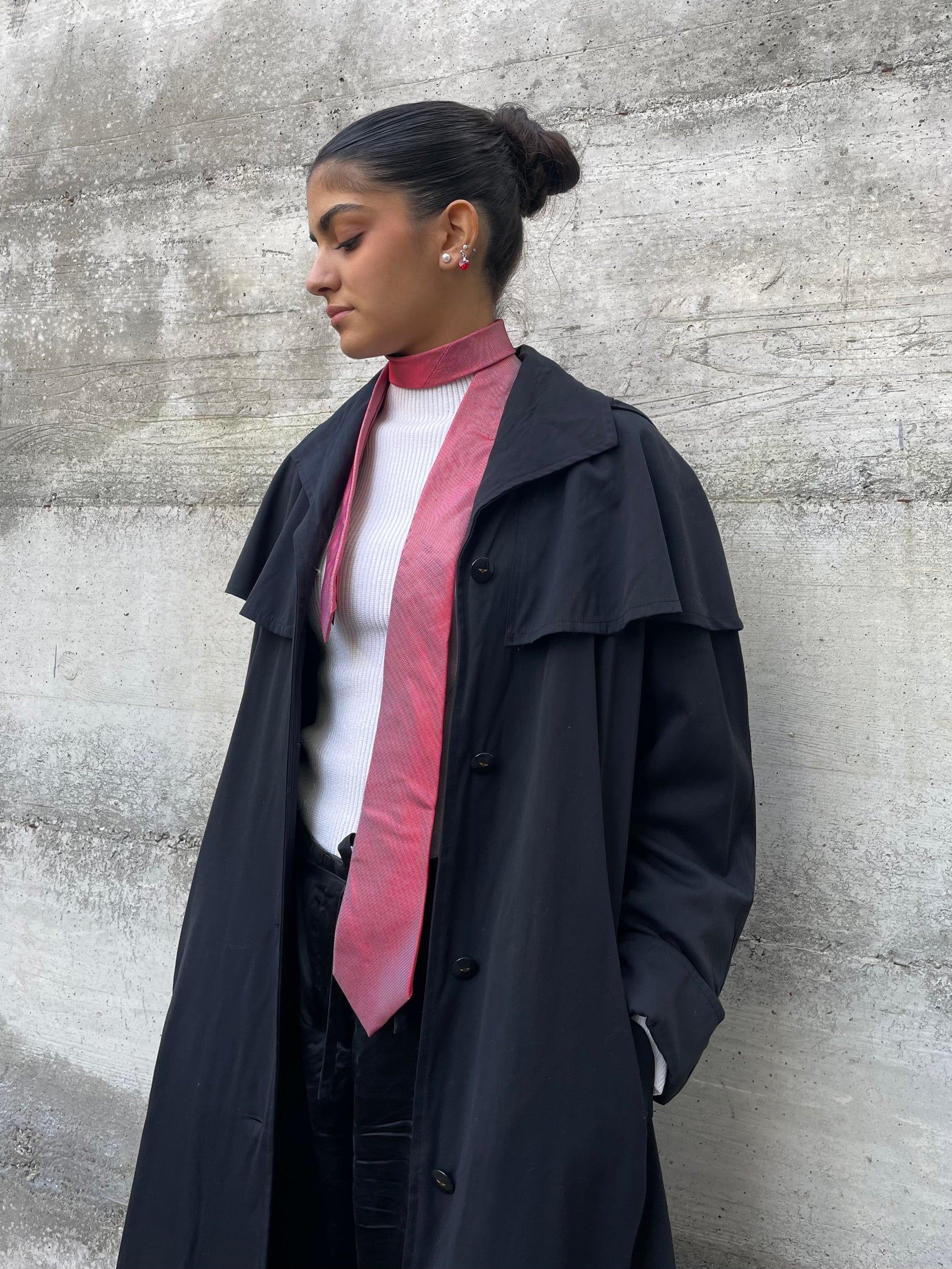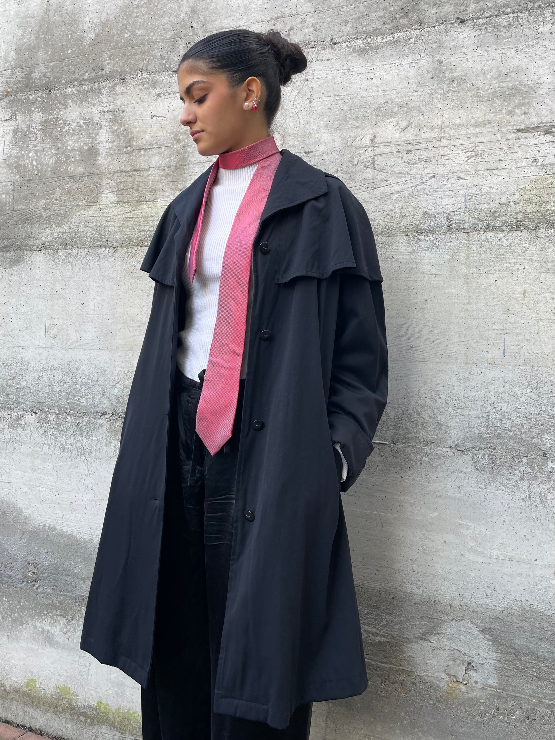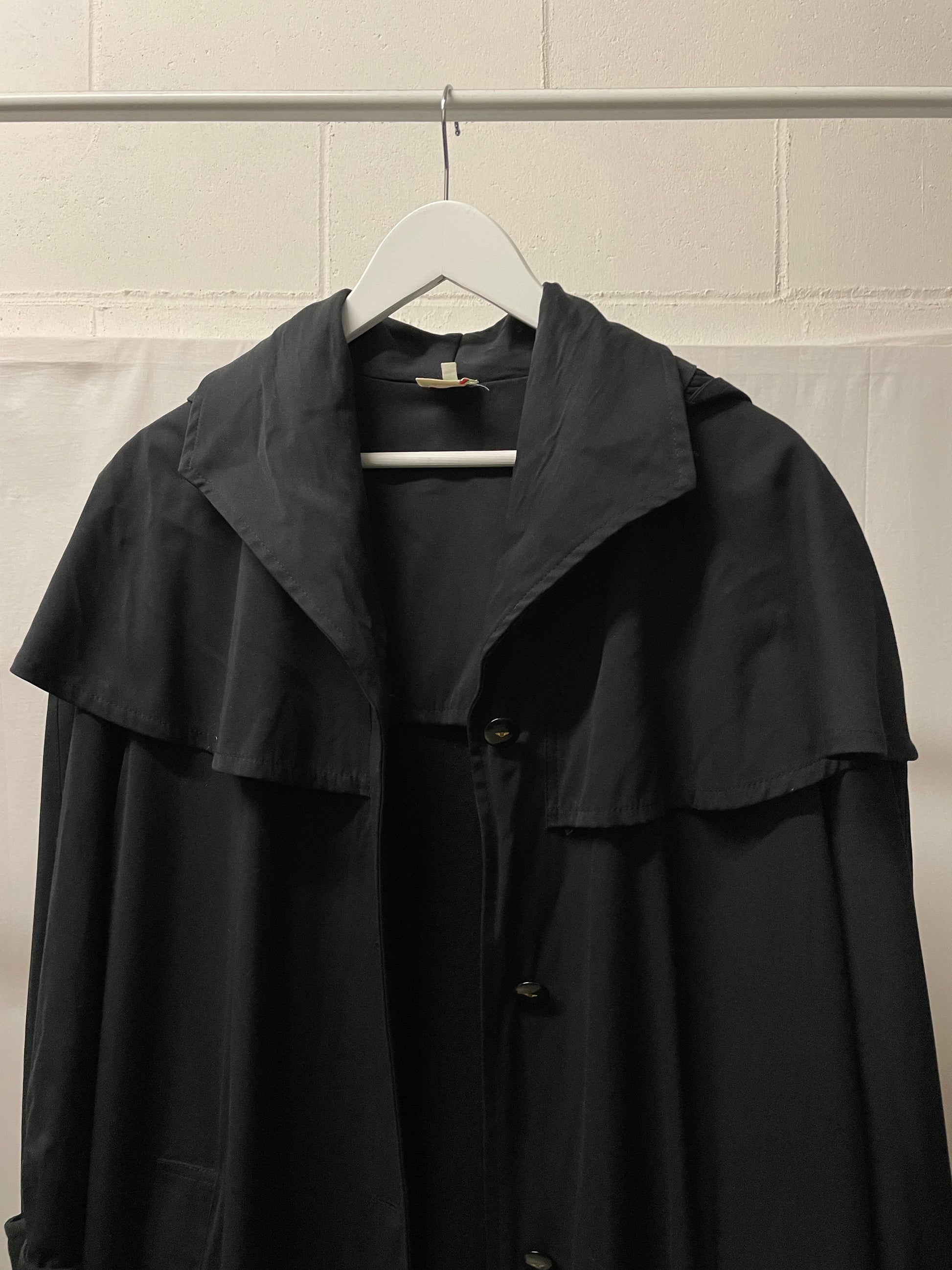 Splendido trenchcoat / mantellina sartoriale Made in Italy nero.