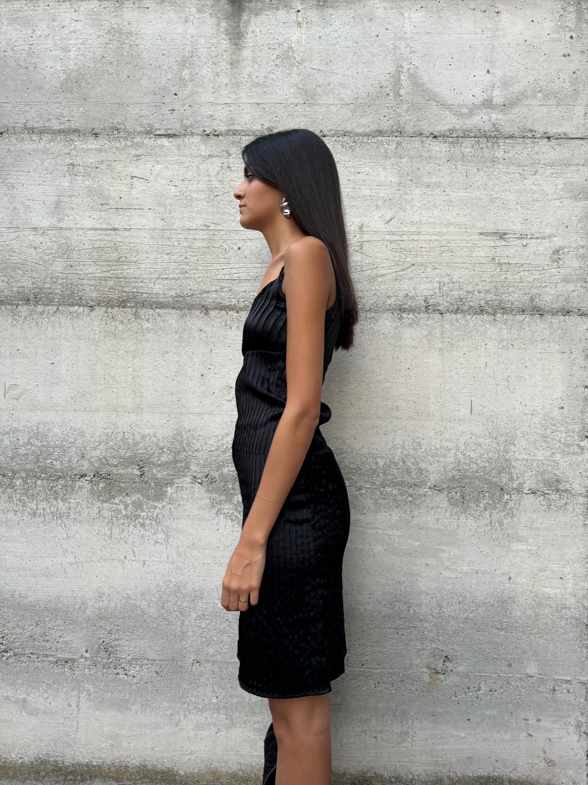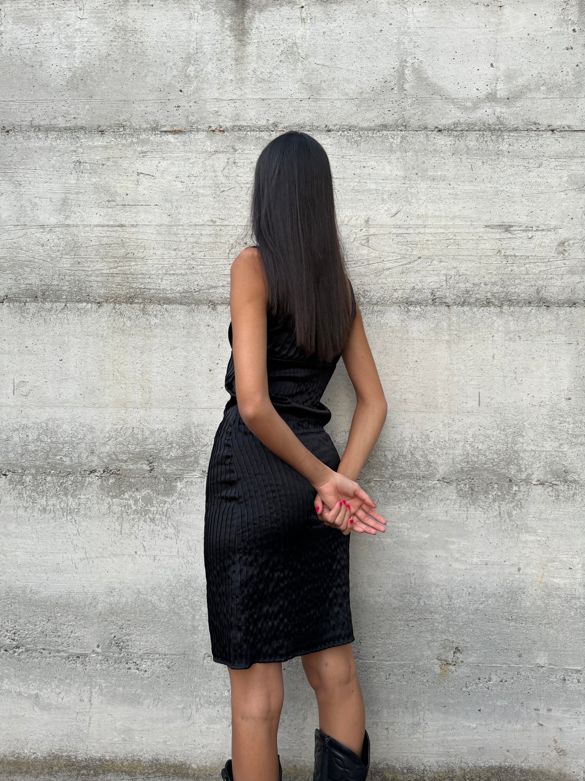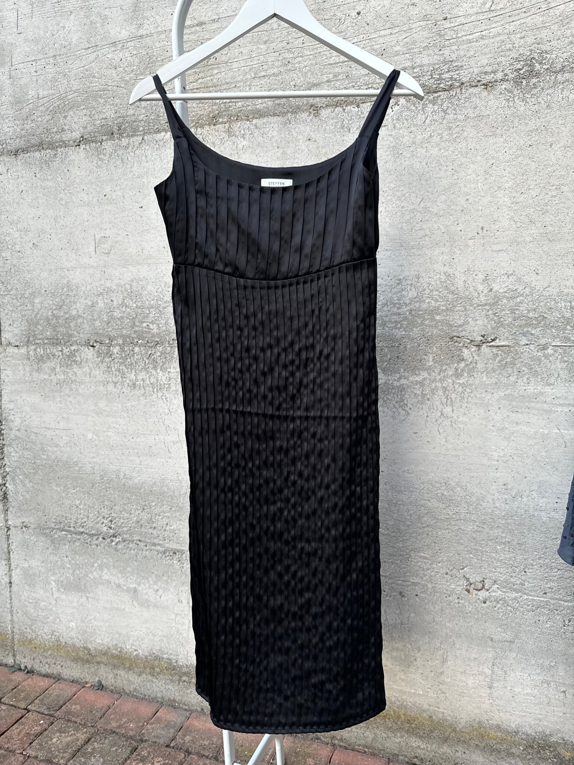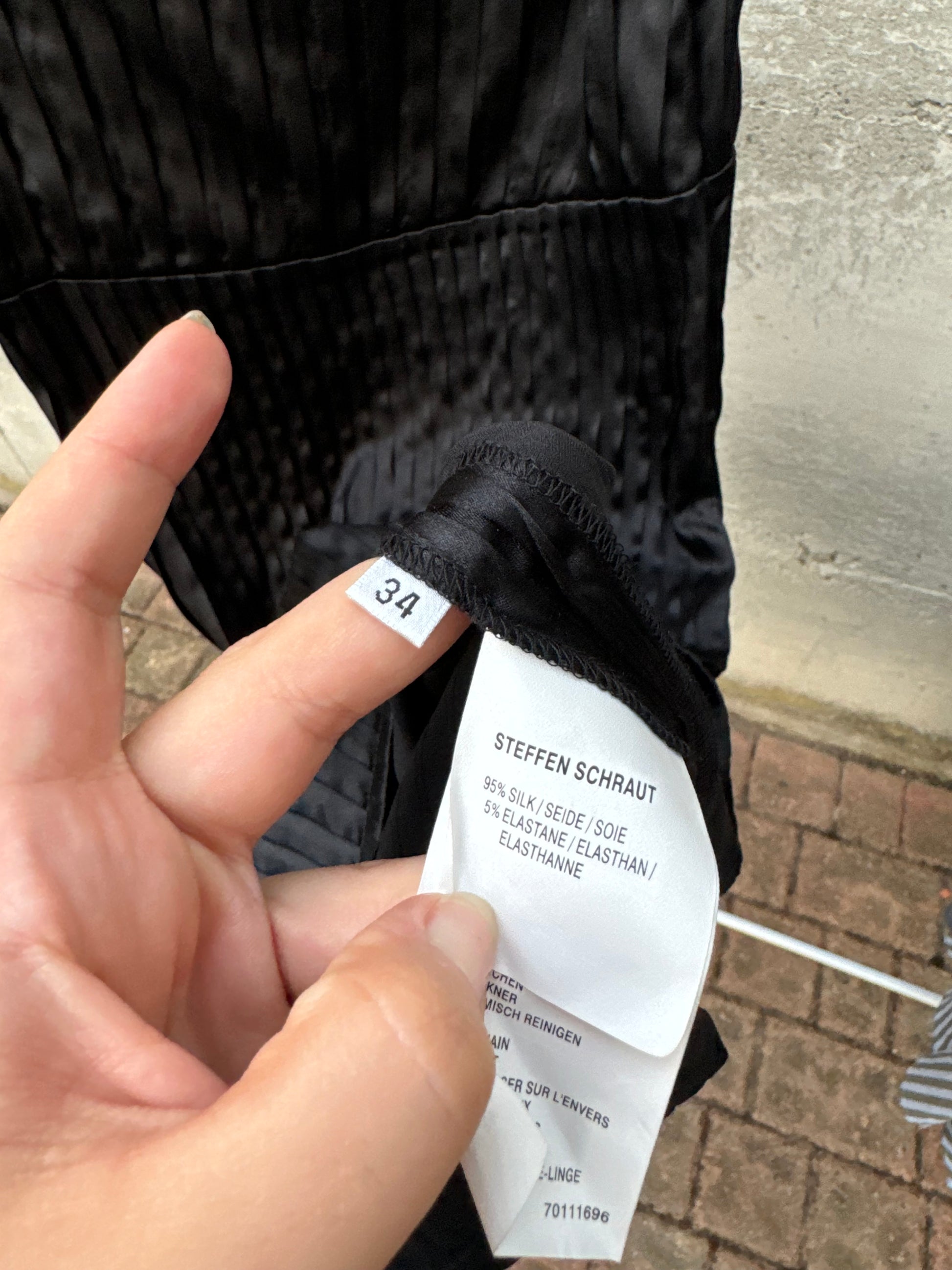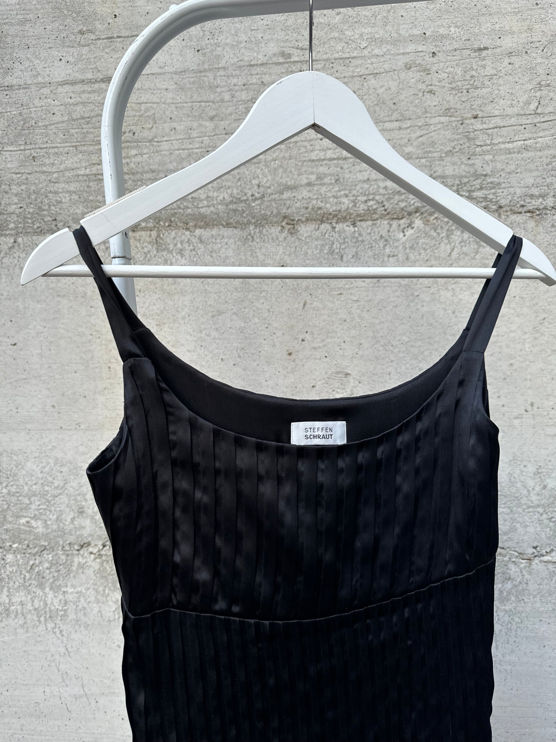 Tubino longuette nero Steffen Schraut in pura seta plissettata.
