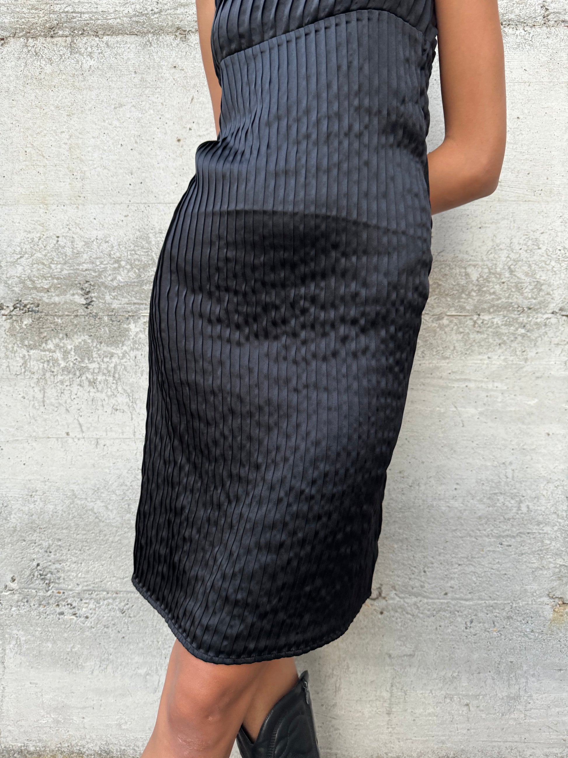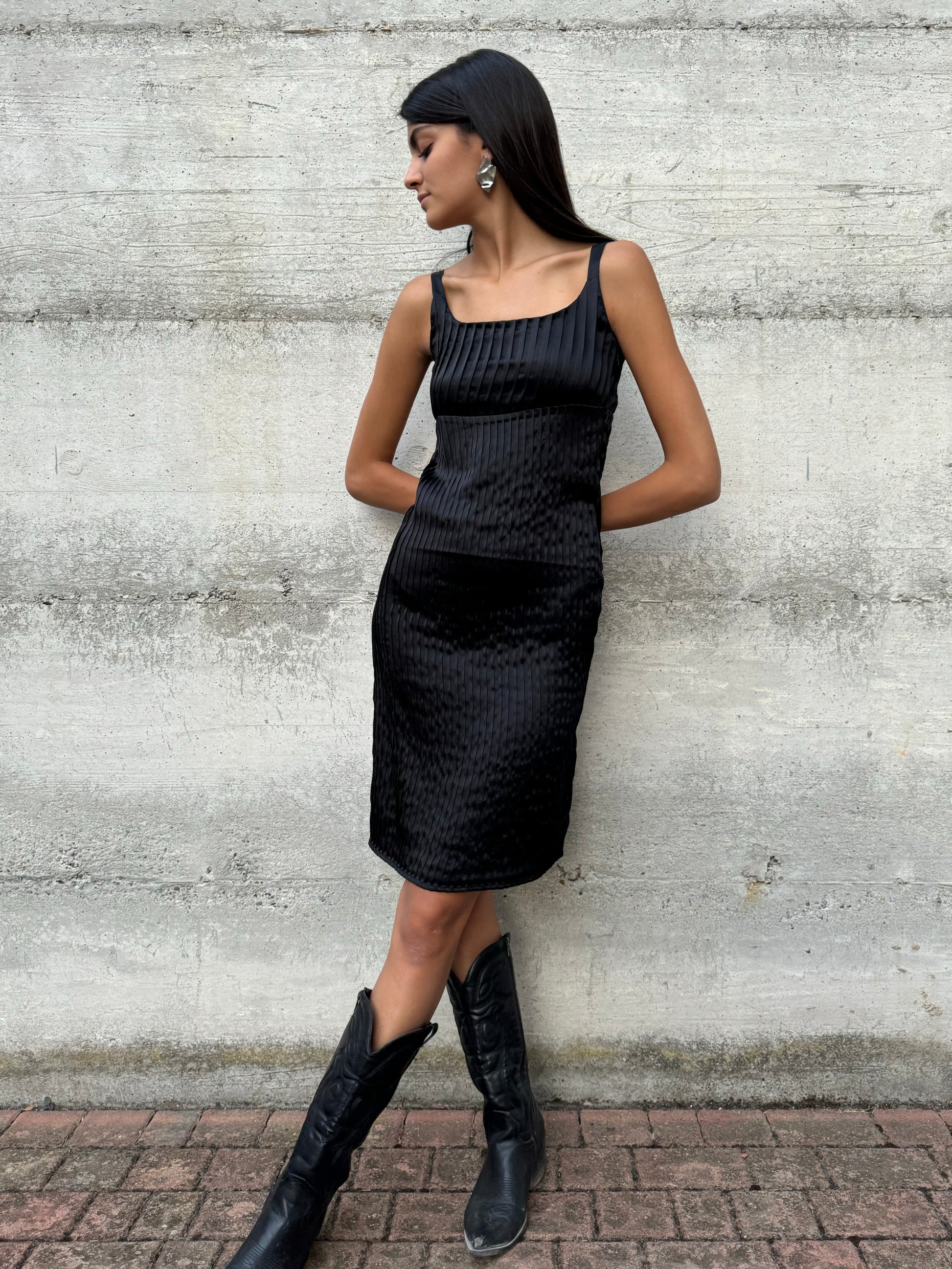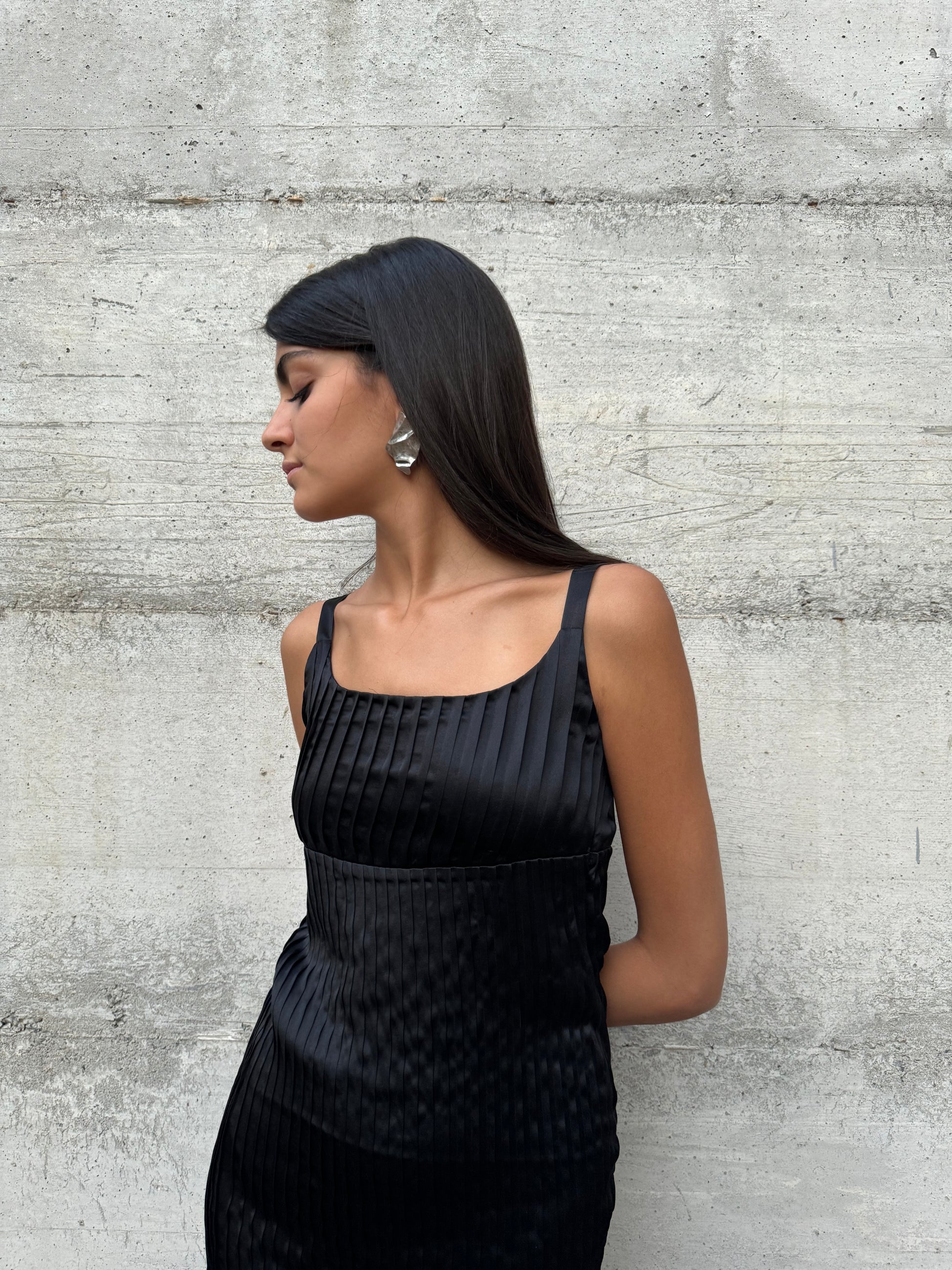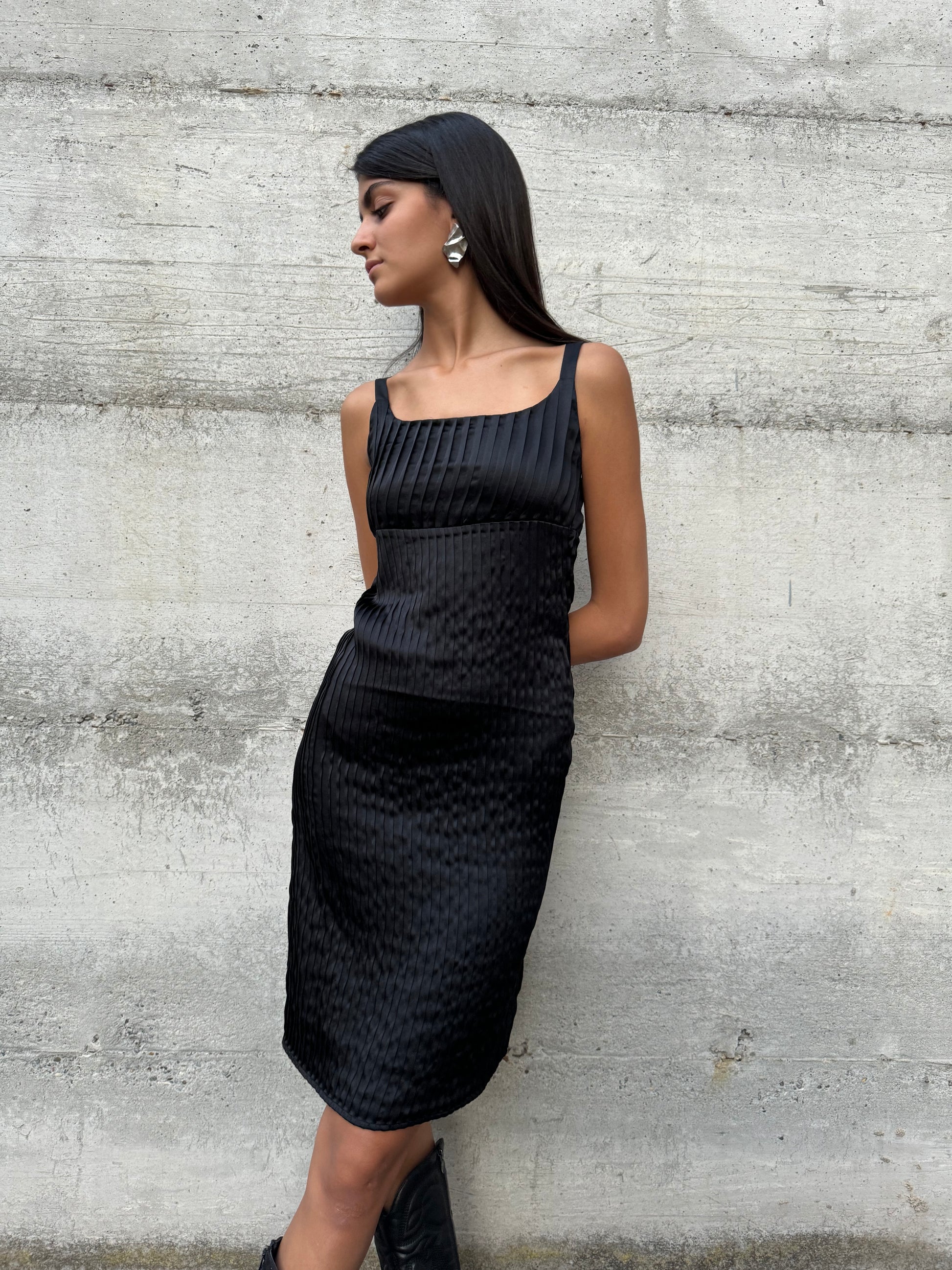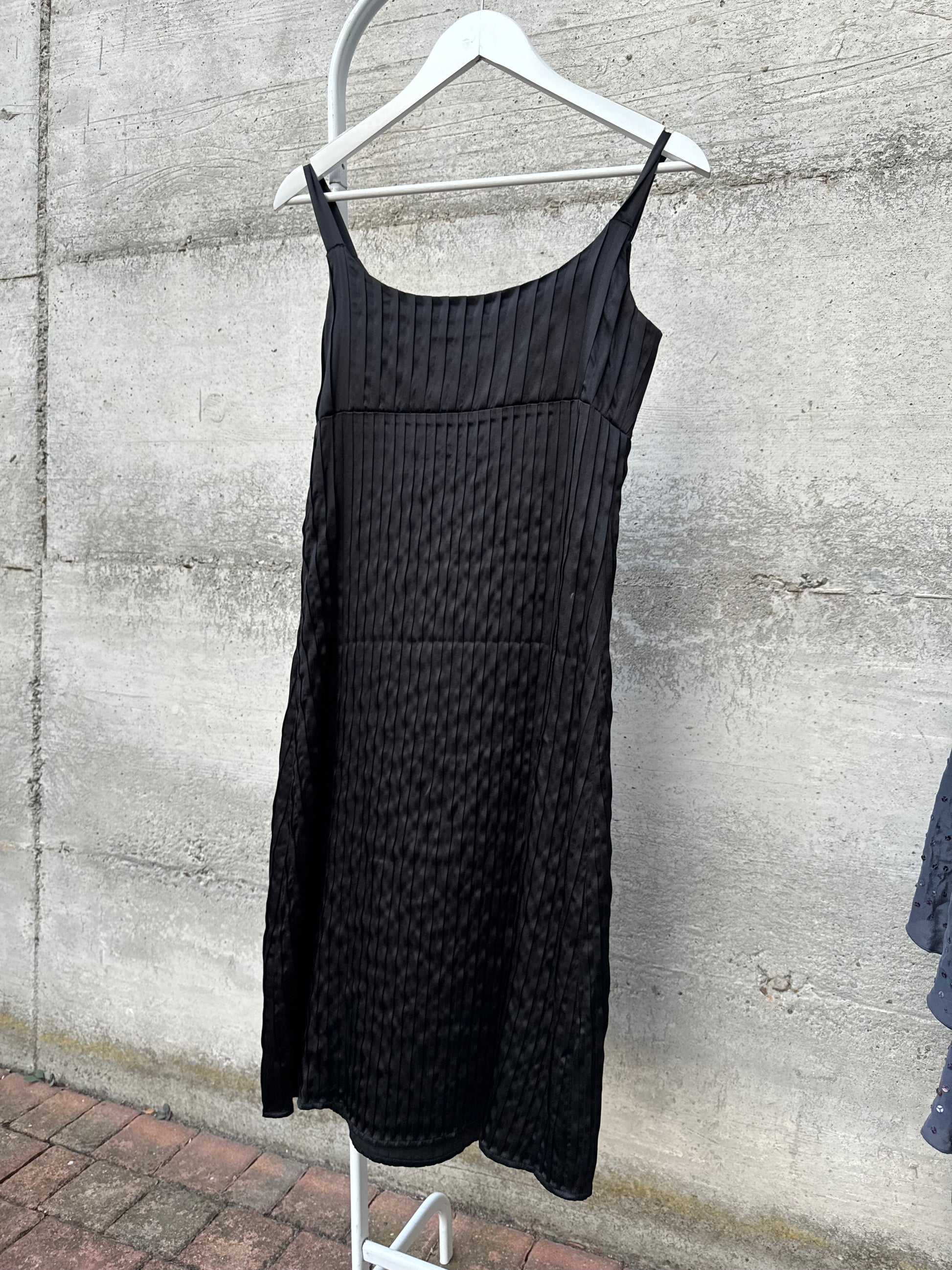 Tubino longuette nero Steffen Schraut in pura seta plissettata.