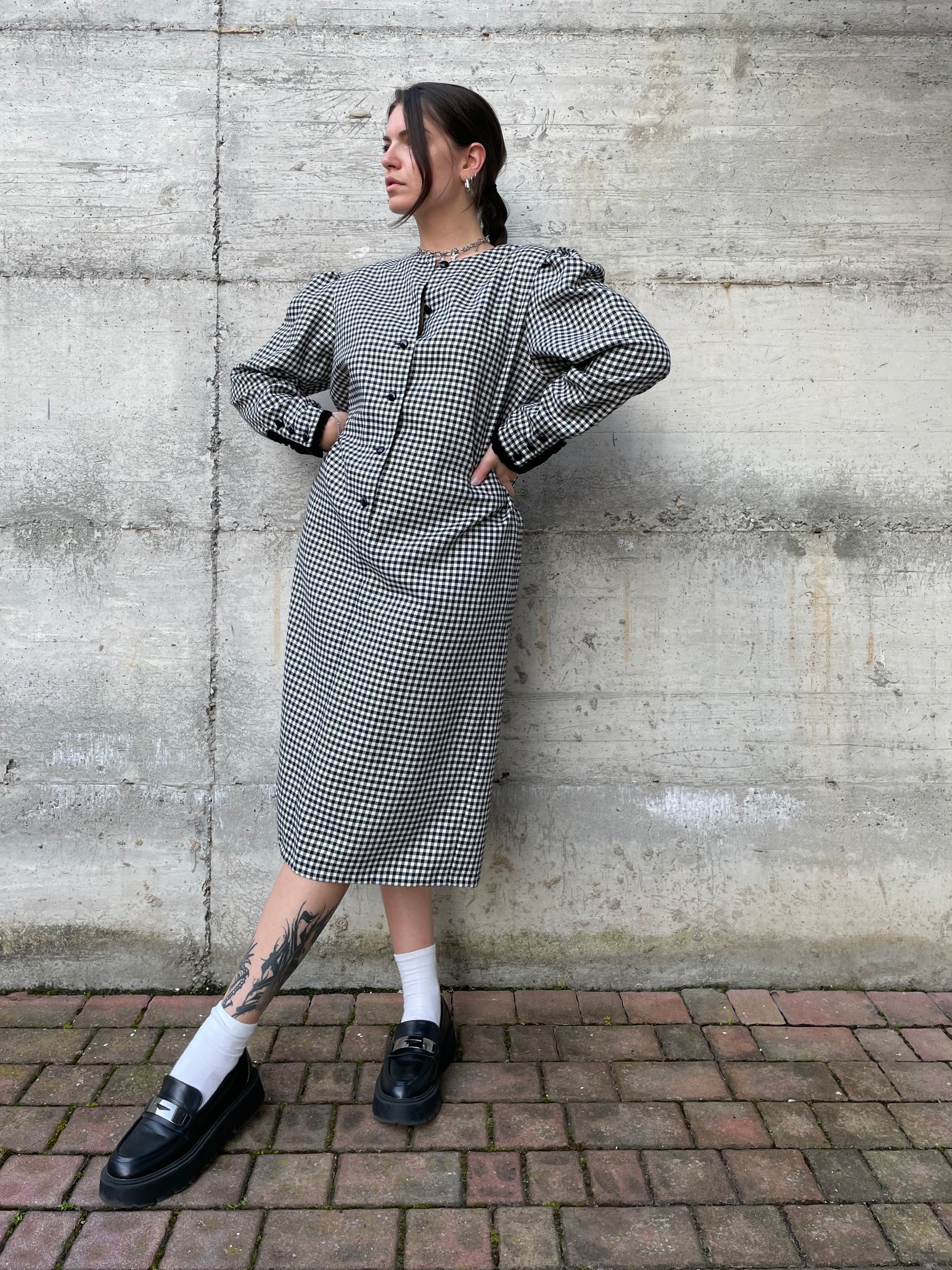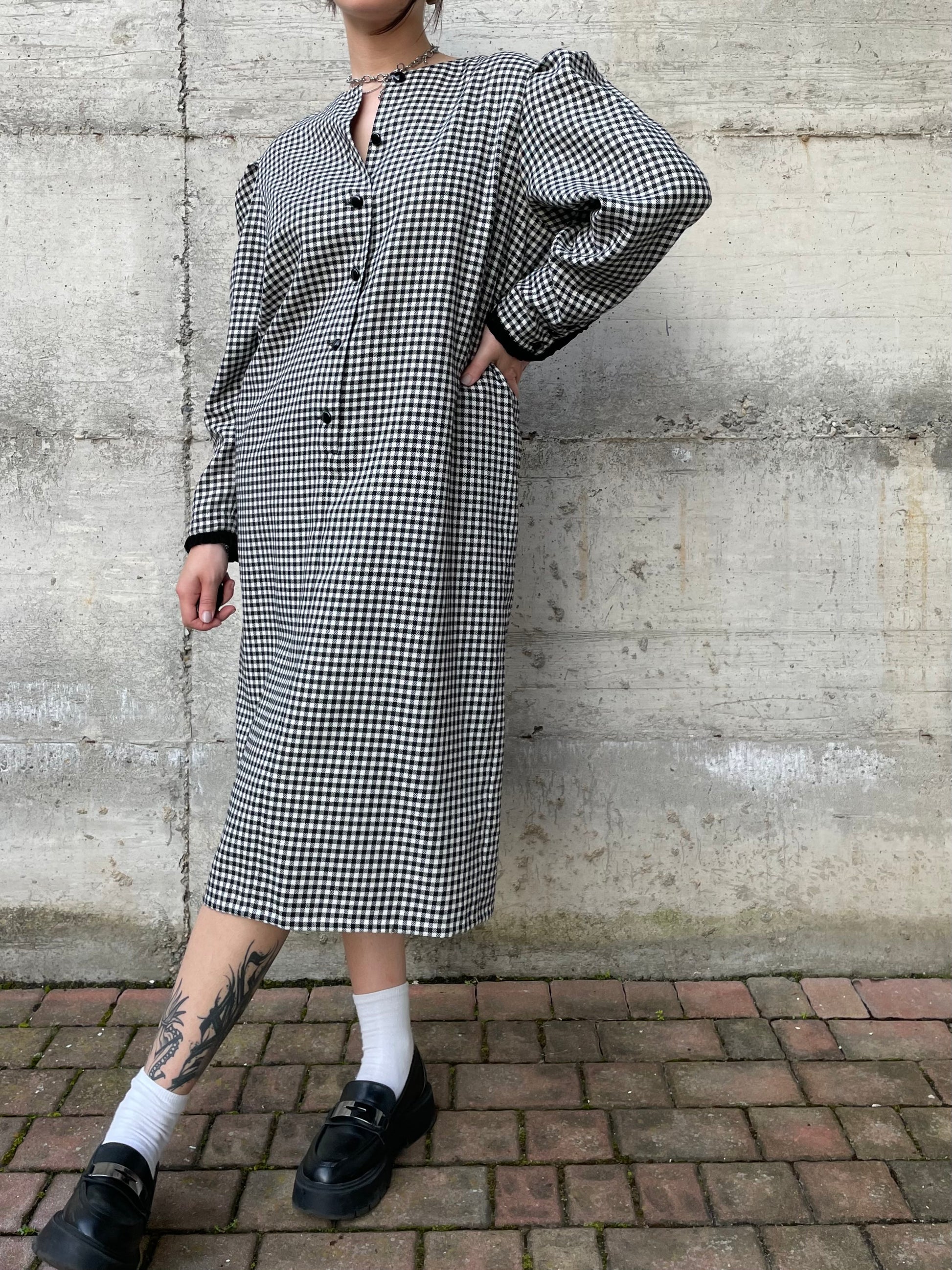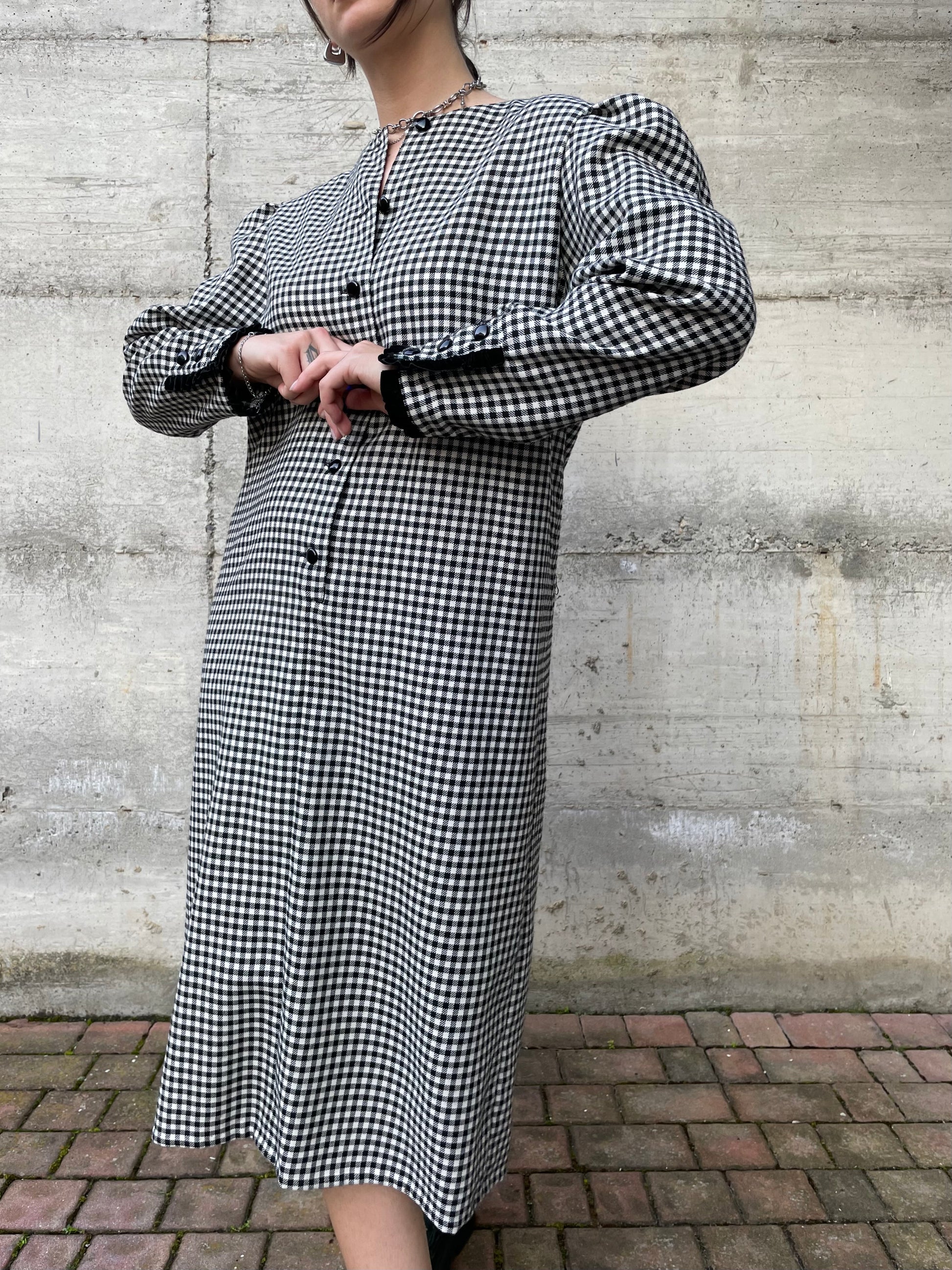 Vestito midi fantasia vichy bianco e nero, Luisa Spagnoli.
