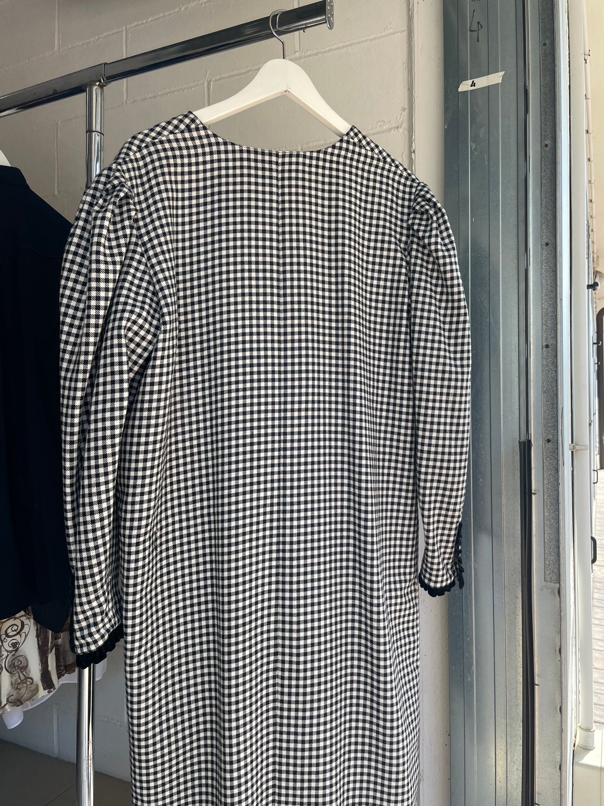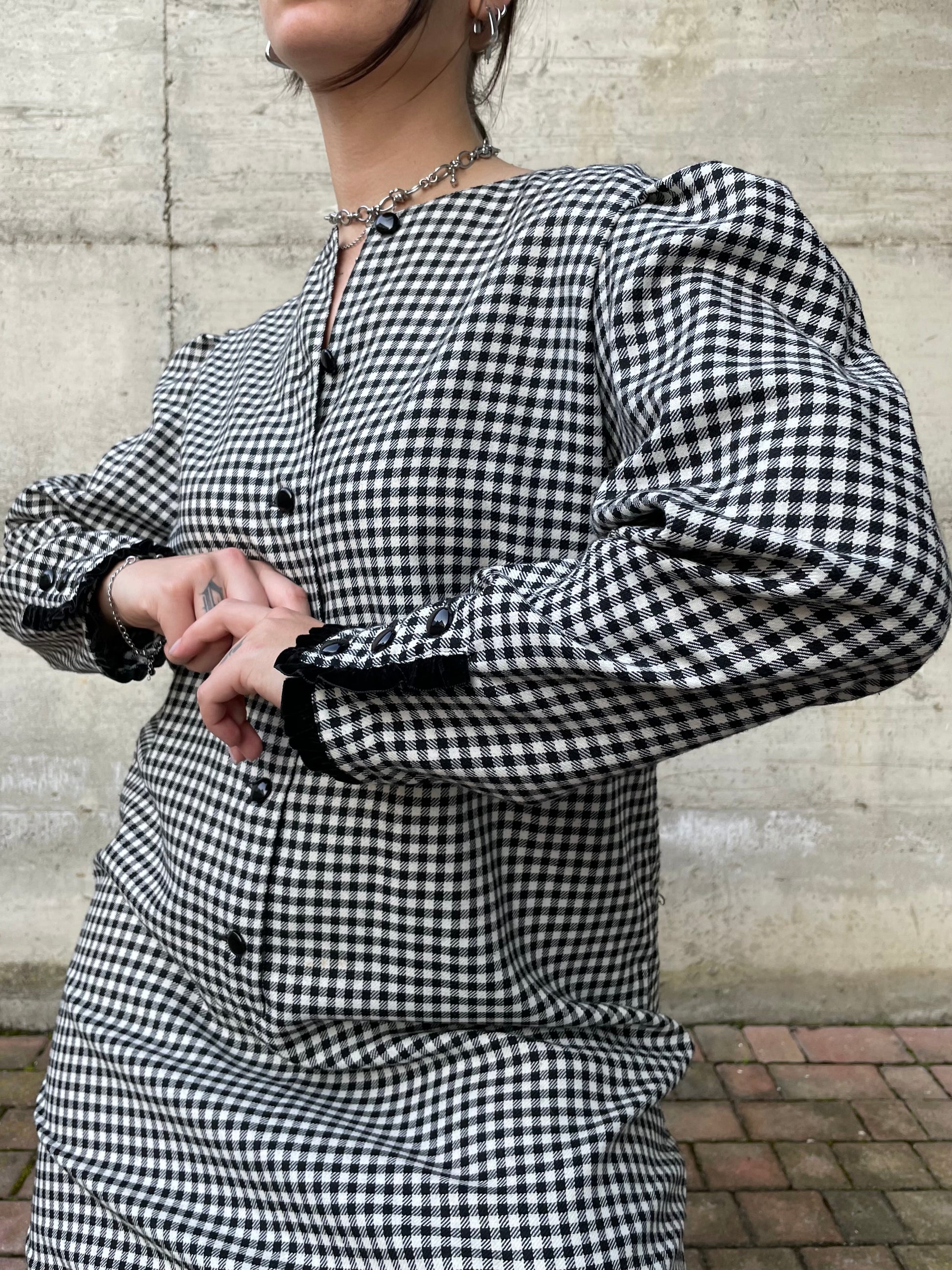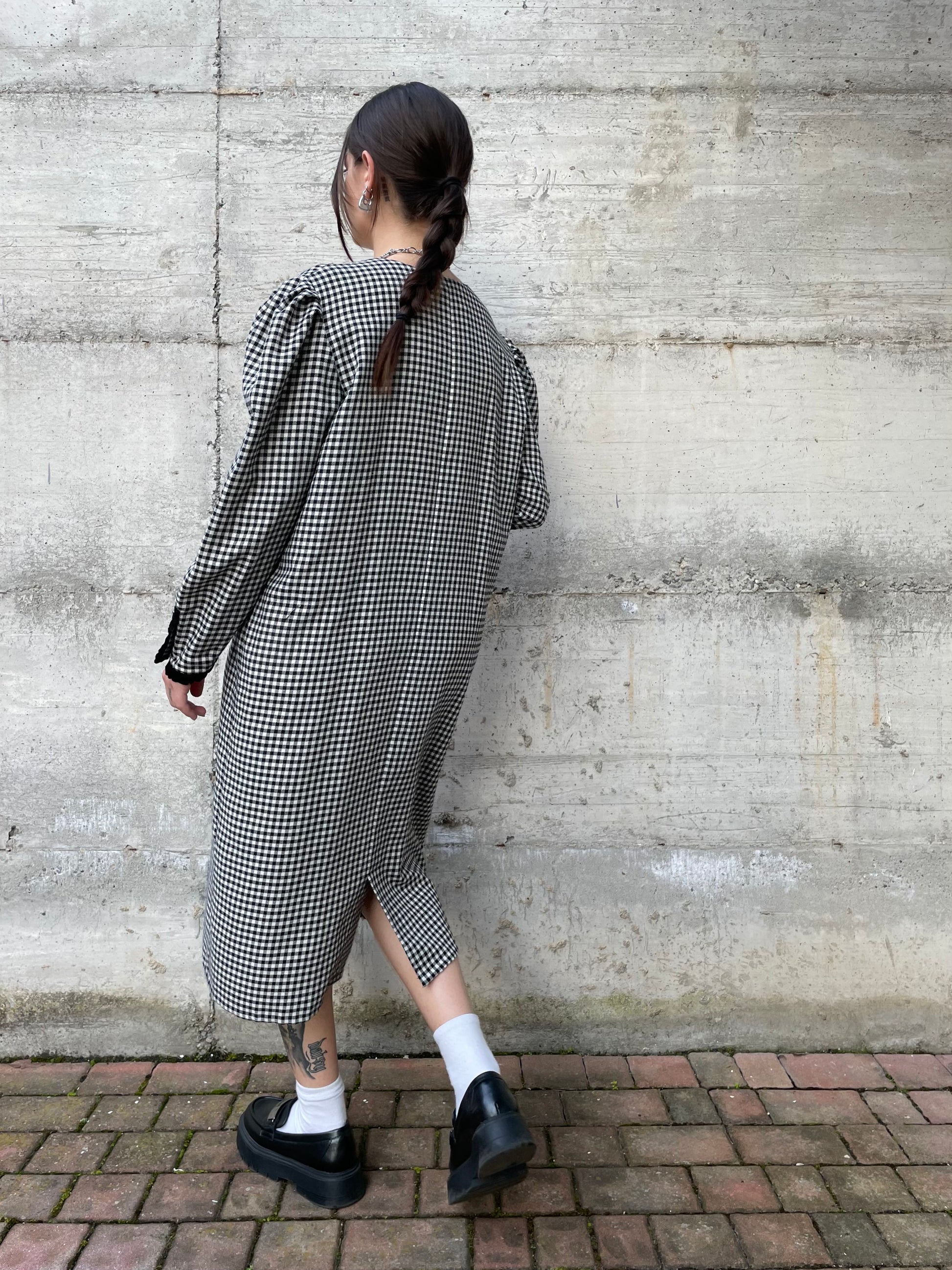 Vestito midi fantasia vichy bianco e nero, Luisa Spagnoli.